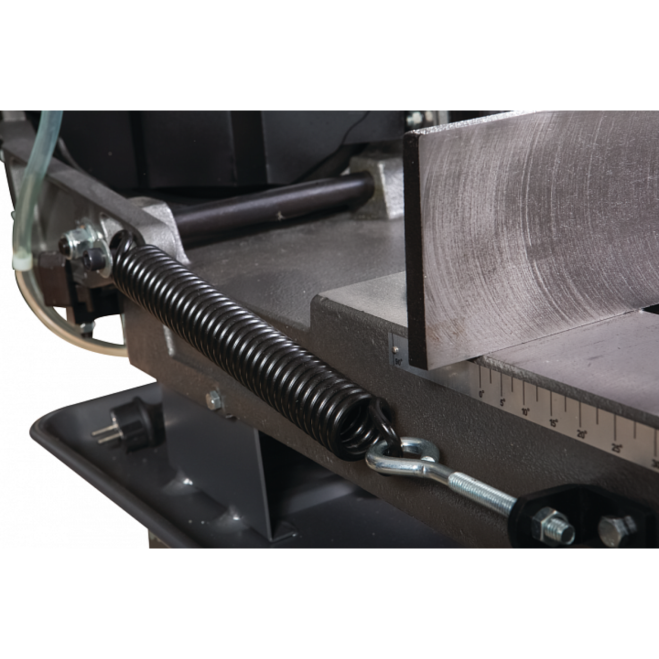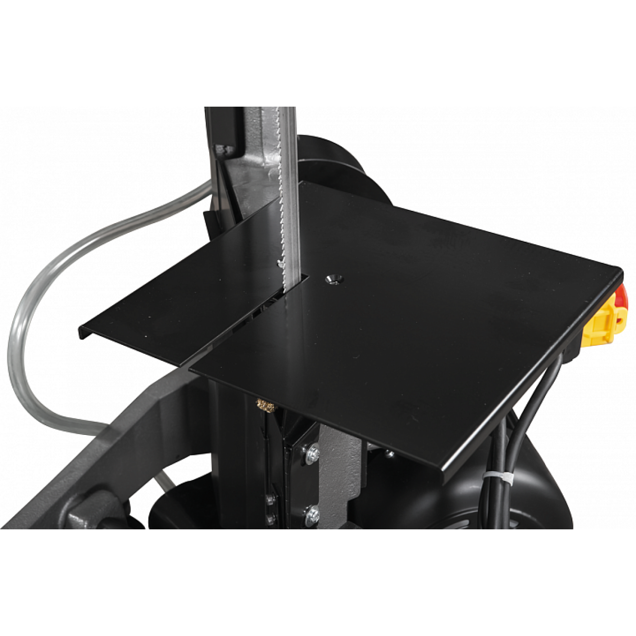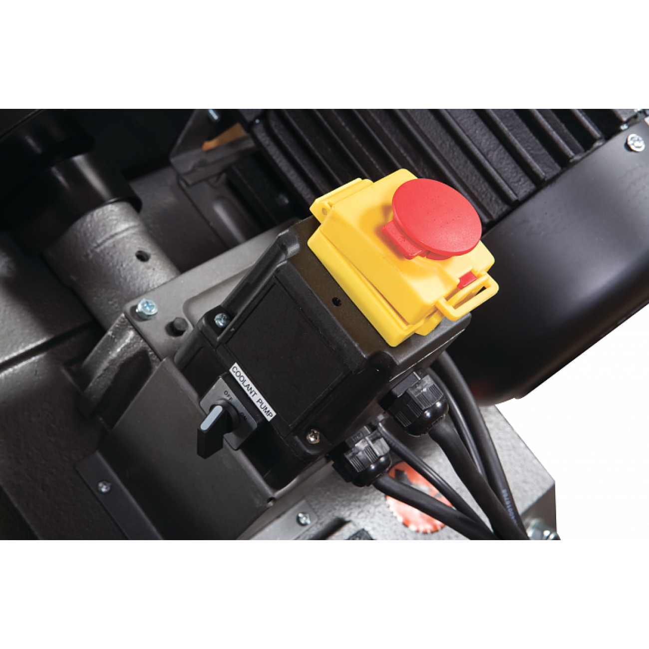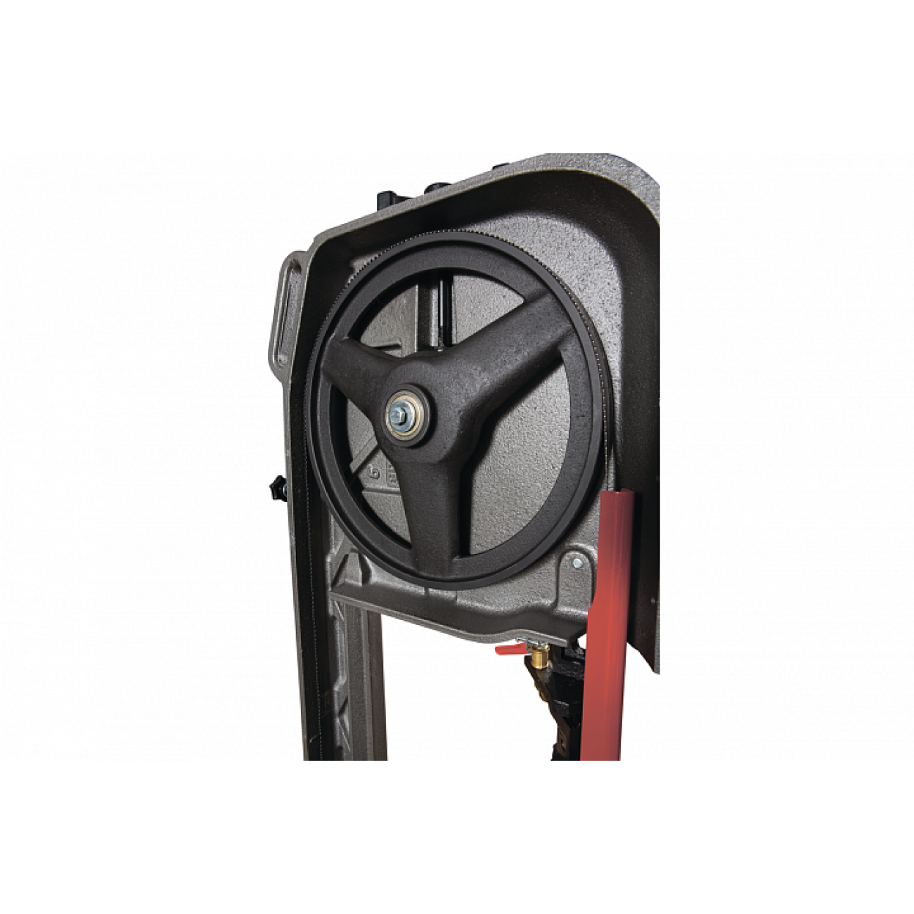 Ленточнопильный станок оснащен двигателем, способным работать в разных режимах электропитания. При подачи на двигатель напряжения в 220 В двигатель выдает мощность 0,56 кВт. Использование станка на производстве позволяет использовать 3-х фазное электропитание, увеличивая мощность двигателя до 0,75 кВт. Ременная передача позволяет осуществлять смену скорости движения ленточного полотна. Станок может выполнять распил заготовок в трех режимах скорости движения полотна 25,32,45 и 72 м/мин. Включение двигателя осуществляется через блок управления. Конструкция станка предусматривает установку автоматического выключателя после окончания распила.