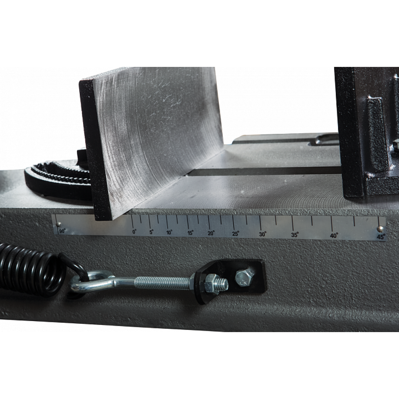 Ленточнопильный станок HVBS-712K является представителем линейки моделей американского типа. Станок используется для работы на производстве, для работы в промышленных условиях. Конструкция ленточнопильного станка позволяет осуществлять распил круглых металлических заготовок под прямым углом, максимальный диаметр которых составляет 175 мм, под углом в 45 0 - 110 мм. Смена позиции заготовок для определения угла распила, осуществляется путем переустановки губок механических тисков в необходимое положение. Угол распила определяется в соответствии с делениями шкалы. Тяжелая литая консоль оборудована механизмом гидроразгрузки, с помощью которого уменьшается нагрузка на оператора при поднятии и опускании пильной рамы. Сила прижима консоли и скорость подачи рамы регулируется с помощью гидроцилиндра. Модель HVBS-712K позволяет осуществлять распил заготовок в вертикальном положении.
