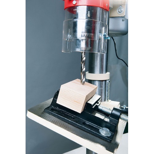 Преимуществом модели является и то, что устройство можно эксплуатировать в сочетании со сверлами, которые имеют конический хвостик. Нельзя не отметить, в комплектацию данного оборудования входят станочные тиски. Для их установки на основании станка имеются специальные пазы.