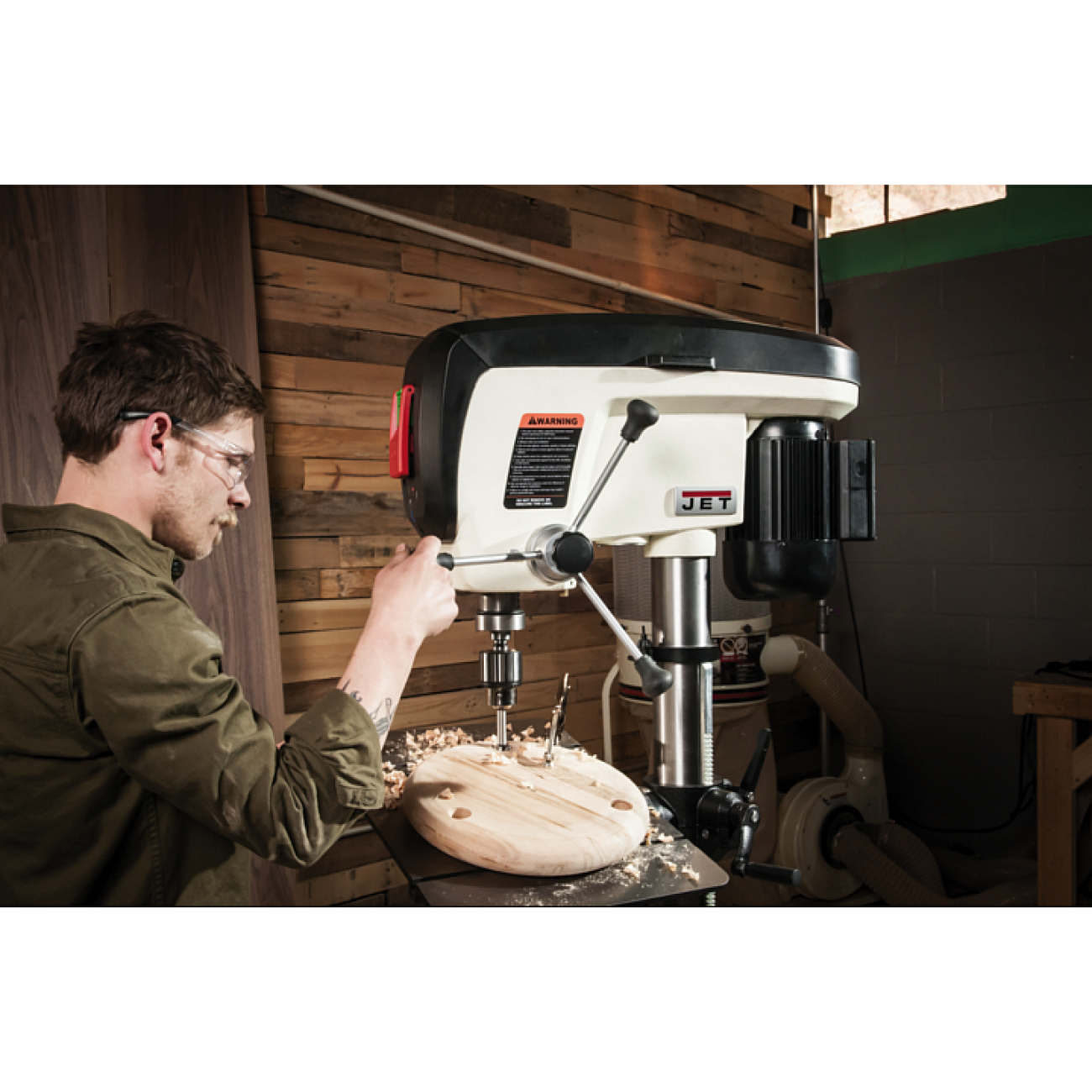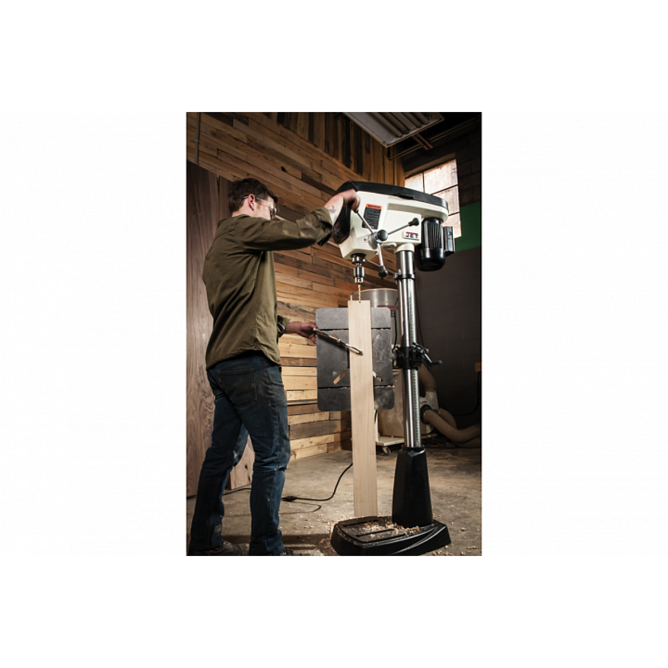 Jet JDP-17 — сверлильный станок по дереву для профессиональной работы в столярных мастерских. Специализация проявляется в особенностях конструкции, облегчающих крепление крупногабаритных, но лёгких заготовок, в увеличенном ходе пиноли шпинделя и в ряде других деталей. Иными словами, несмотря на адаптацию, станок остается универсальным и может сверлить металл, пластик и другие материалы.