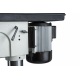 Шпиндель станка имеет конус МК-4, благодаря этому, ну и конечно двигателю мощностью 0,85кВт, станок способен сверлить отверстия в заготовках диаметром 32 мм. Не забывайте, что при этом на станке установлен асинхронный двигатель, подключается он к сети 380В и весь момент от двигателя передается через шкивы и ремни. Всего на станке 12 скоростей от 70 до 1650 об/мин. Обратите внимание именно 70 оборотов, это самая маленькая скорость в классе. Момент огромный и на маленьких оборотах сверлить, например, чугун можно до 35 мм.