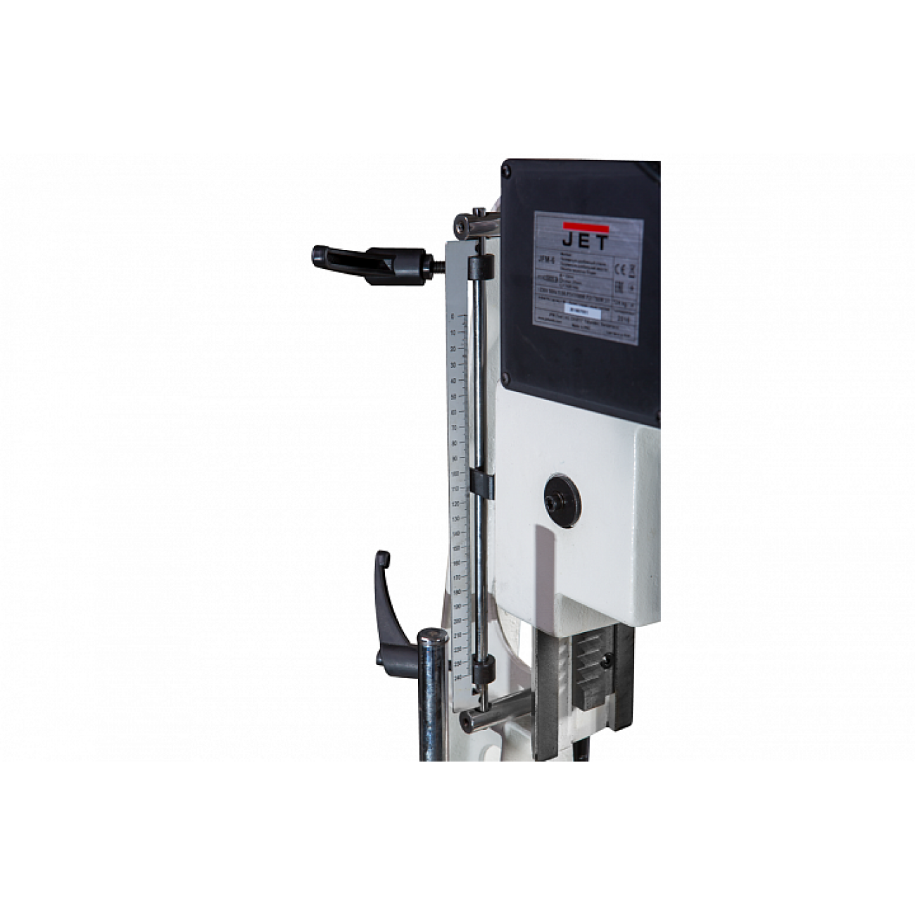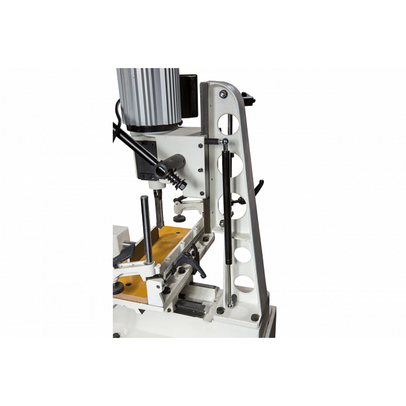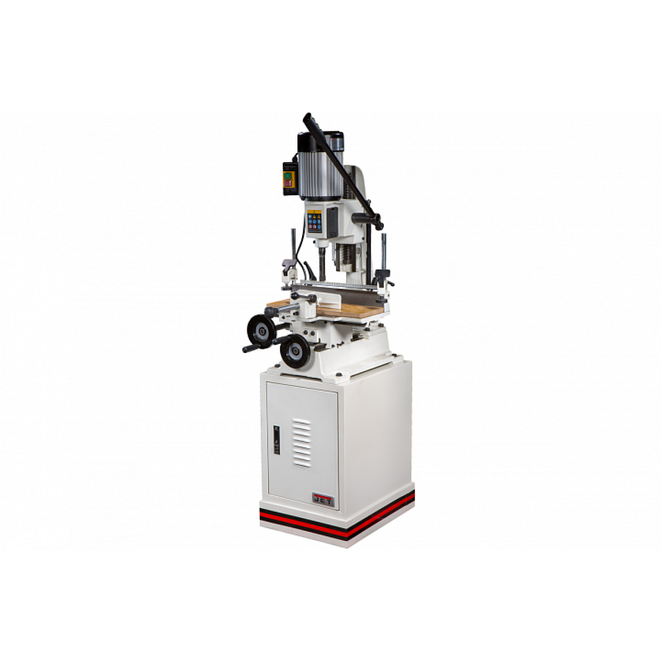 JFM-6 хорошо оснащенный, удобный и точный в работе долбежно-пазовальный станок для любительского применения. Основание, колонна, рабочий стол, упоры и прижимы заготовки выполнены из массивных чугунных отливок, что обеспечивает высокую точность и отсутствие вибраций при работе. В комплект поставки входит металлическая тумба-основание с отсеком для хранения инструментов.