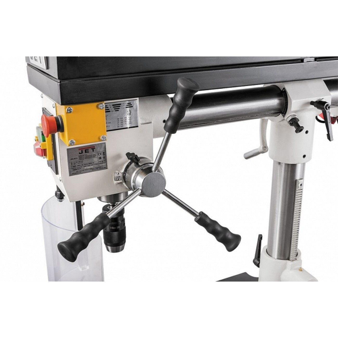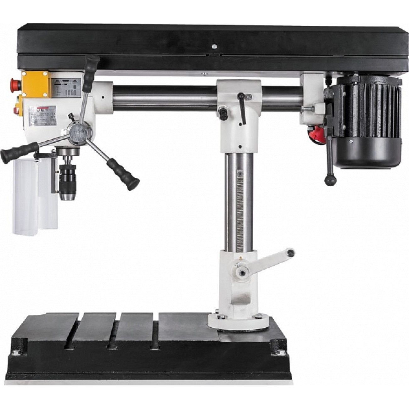 Jet JRD-387A — радиально-сверлильный станок промышленного класса, предназначенный для работы с любыми материалами (металл, древесина, пластики, композиты и т.п.). Имеет жесткую, прочную и массивную конструкцию, которая обеспечивает точность, отсутствие вибраций и долговечность. Поставляется в комплекте с металлической тумбой-подставкой, одновременно служащей вместительным отсеком для хранения принадлежностей и инструментов.