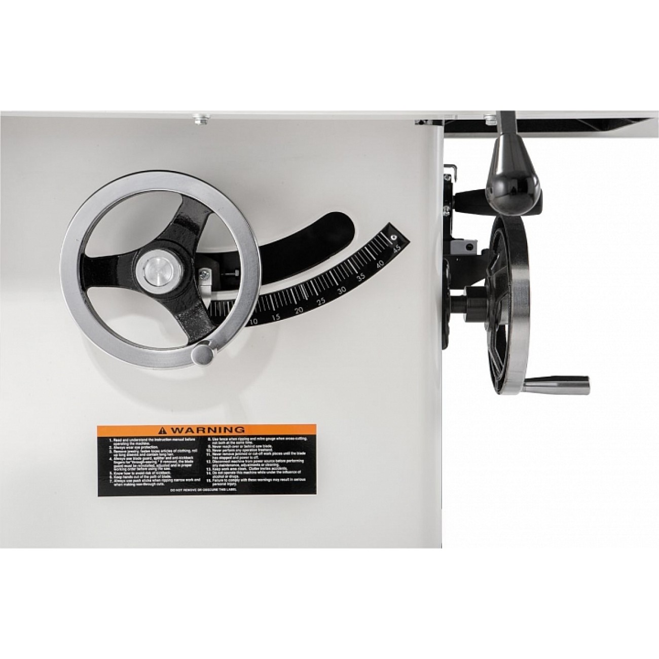 Основные особенности JTAS-10DX, кроме очень мощного мотора, заключаются в глубокой проработке всех нюансов, влияющих на удобство и точность работы. Так, по оценке профессионалов, регулировка высоты и наклона пильного модуля очень точная и плавная. Расклинивающий нож не только опускается вслед за диском, но и легко поддается точной регулировке: для этого достаточно ослабить один эксцентриковый зажим, доступ к которому открывается с верхней стороны стола. Замена диска тоже производится «сверху», причем для блокировки вала предусмотрен специальный механизм. Сама поверхность стола и расширителей (входят в комплект поставки) гладко отшлифована и имеет два Т-образных паза.