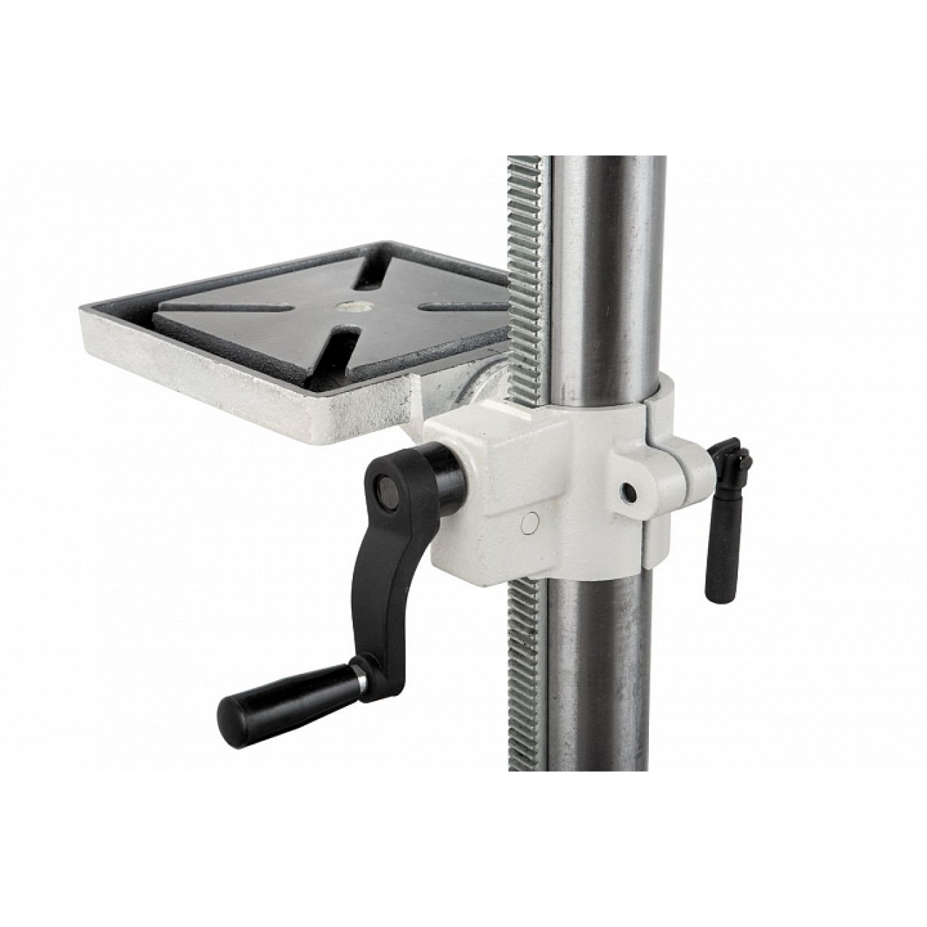 Механизм подачи пиноли имеет лимб (круговую шкалу с миллиметровой разметкой), совмещенный с ограничителем глубины сверления. Полный ход сверла производится за один оборот рукоятки. Рабочий стол регулируется по высоте и по углу наклона, а также поворачивается вместе с кронштейном вокруг колонны.