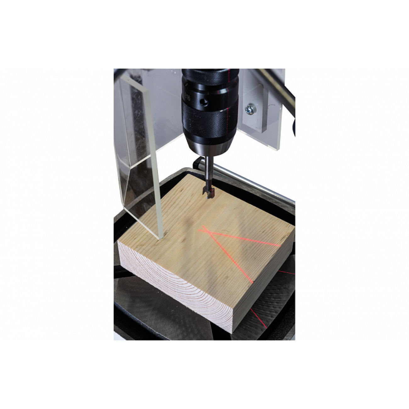 Предусмотрен светодиодный фонарик с выключателем для подсветки рабочей области и лазерный указатель оси сверления.