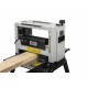 JWP-12 переносной рейсмусовый станок с откидными столами. Несмотря на компактные размеры, оборудован мощным (1800 Вт) тяговитым коллекторным двигателем и позволяет «пропускать» заготовки шириной до 12 дюймов (примерно 300 мм) с высокой производительностью. При тщательной настройке обеспечивает высокое качество рейсмусования, после которого не требуется дополнительная финишная обработка деталей. Подходит для грубого чернового строгания, причем лучше многих других однотипных моделей, поскольку в отличие от них имеет прочные перетачиваемые ножи, зафиксированные в барабане распорными планками, а не узкие одноразовые. Дополнительным преимуществом является запасная пара качественных лезвий из быстрорежущей стали, поставляемая в штатном комплекте. Станок имеет пылесборный кожух с патрубком для подключения к системе аспирации и оборудован типовыми для переносных рейсмусов системами регулировки высоты строгания вращающейся рукояткой и автоматической протяжки заготовки при помощи обрезиненных валов.