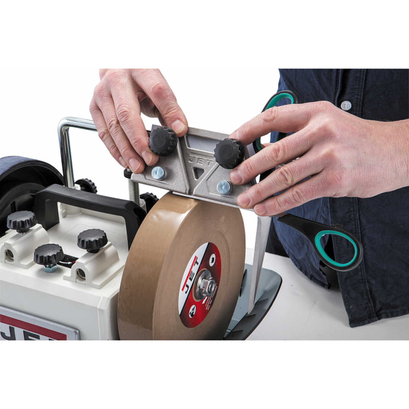Фиксатор с двойным зажимом позволяет затачивать прямые лезвия с разной в сечении толщиной, такие как лезвия ножниц, секаторов и пр. Применяется для шлифования вдоль направляющей штанги SA-1