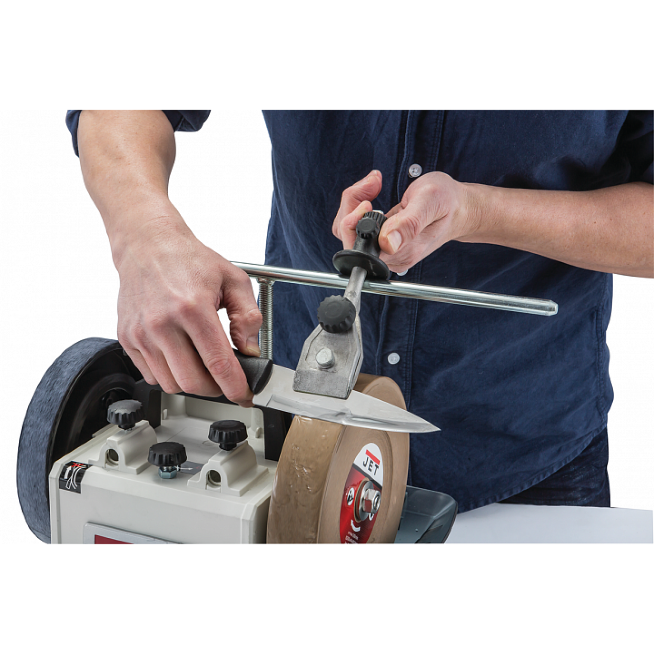 Малая державка для фиксации и заточки лезвий длиной до 10 см с опорой на направляющую штангу. Облегчает удержание правильного угла при работе с лезвиями имеющими закругленные участки.