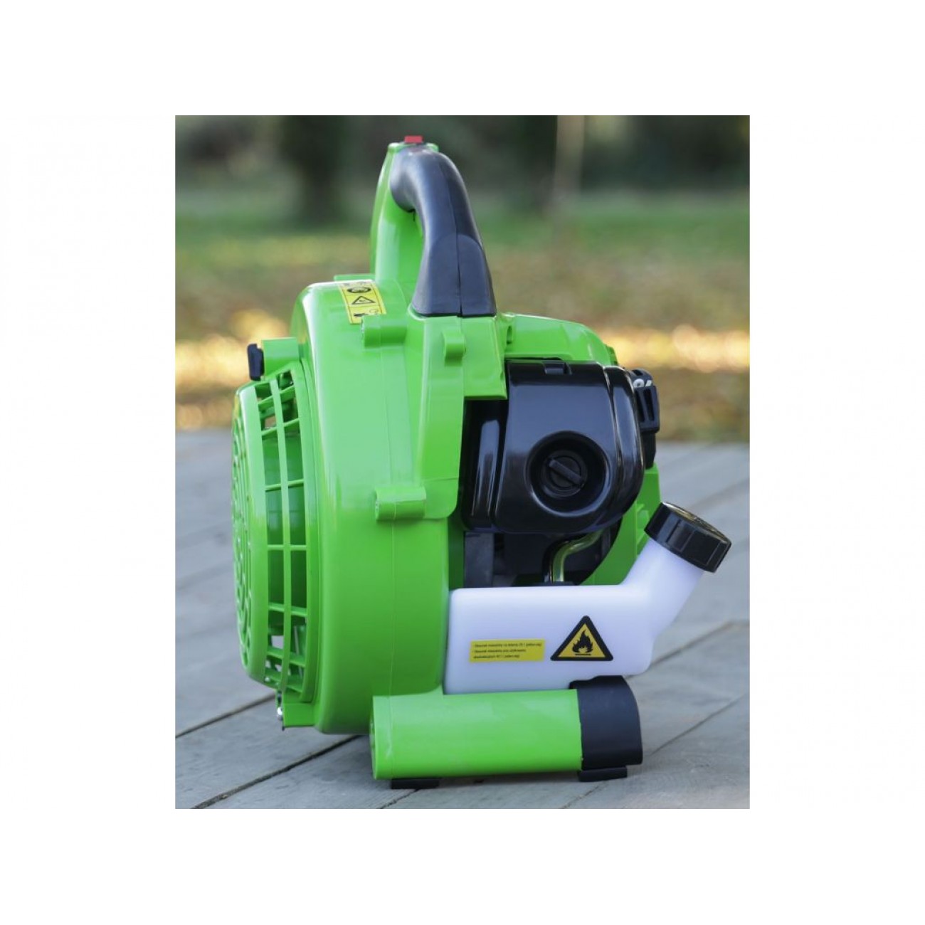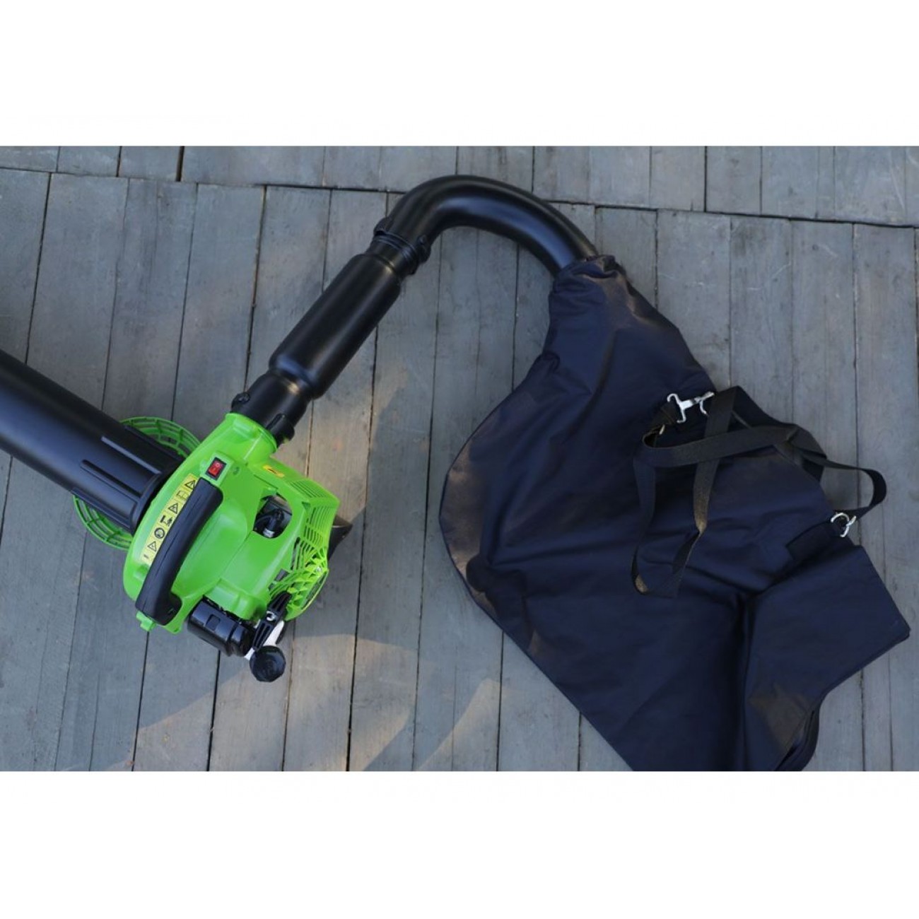 Пристрій оснащений 2-тактним бензиновим двигуном потужністю 750 Вт, який забезпечує стабільну та продуктивну роботу і необмежений діпазон пересування завдяки відсутності шнурів. Додатковою перевагою є функція подрібнення зібраних відходів, яка допомагає зменшити їх об’єм і дозволяє в подальшому використати їх у якості мульчі чи компосту. Цей садовий пилосос повітродув має компактний розмір і вагу всього 5,5 кг, тому робота з ним не потребує значних фізичних зусиль.