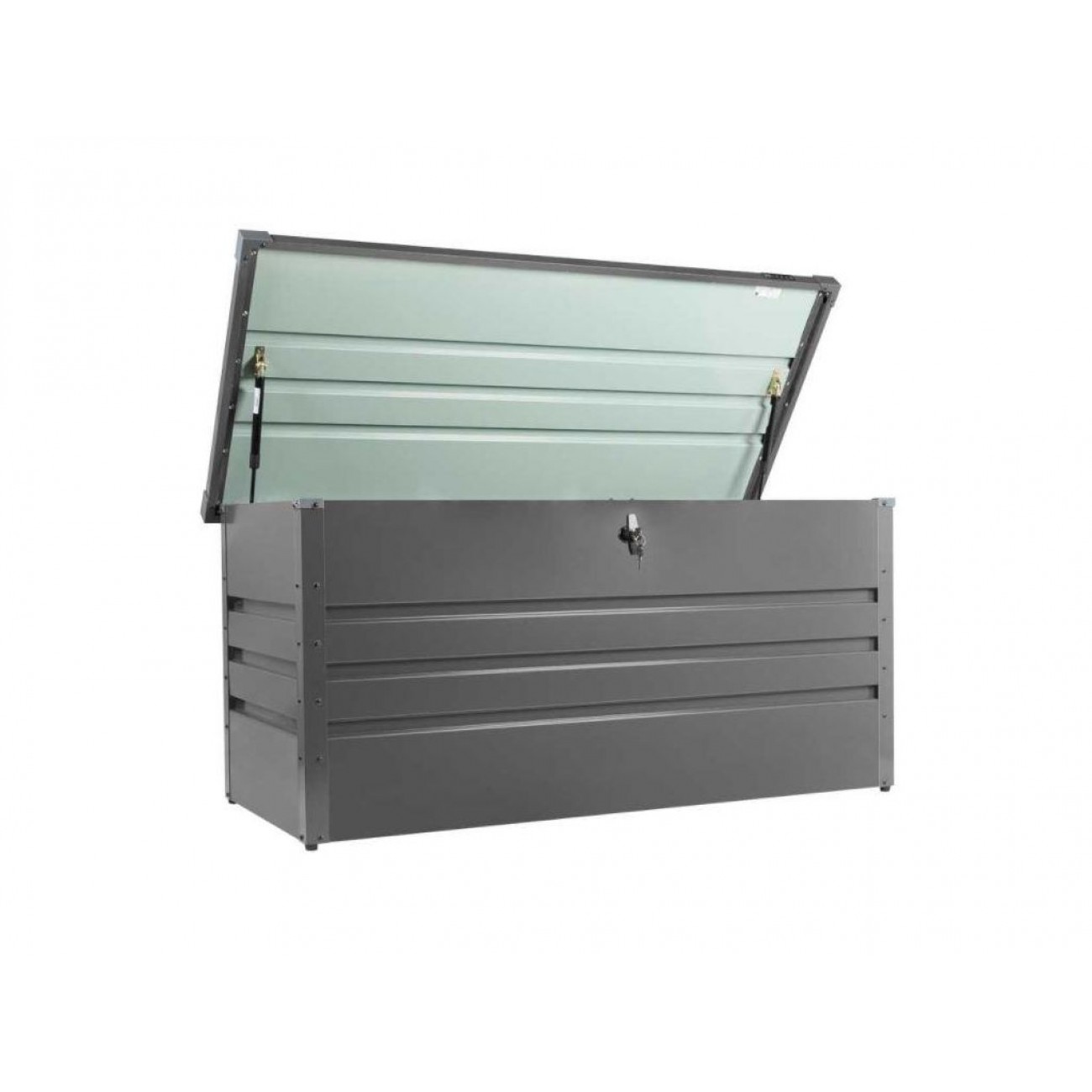 Вантажопідйомність ящика становить 80 кг, максимальне навантаження на кришку - 50 кг. 2 газові пружини забезпечують плавне і легке відкривання кришки. Для захисту особистих речей ящик закривається на ключ. Для уникнення контакту з вологою і додаткової вентиляції дно підняте над землею на ніжках. Вага пустого ящика - 24 кг, тому його можна легко перемістити в зручне місце. Цей садовий ящик для зберігання допоможе підтримувати порядок на ділянці і мати необхідні речі завжди під рукою.