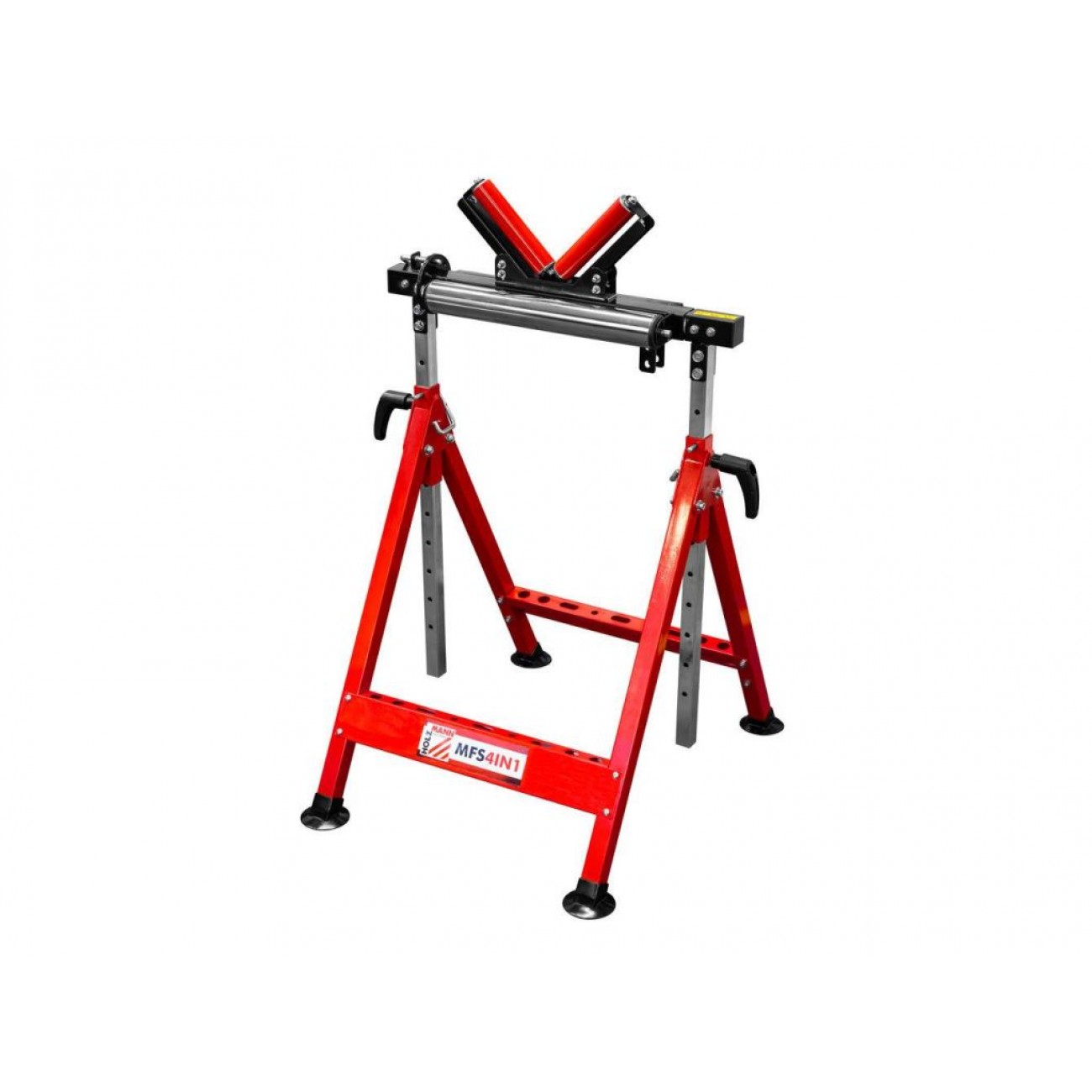 Багатофункціональна стійка Holzmann MFS 4IN1 - це корисне обладнання-трансформер для домашніх і професійних майстерень, яке виконує одразу 4 функції. Може використовуватися як роликова опора для підтримки довгих заготовок, кулькова опора для підтримки і руху заготовок у різних напрямках, V-подібна опора для круглих і профільних деталей та стаціонарна підставка для різних типів робіт. Регулювання висоти від 685 до 1100 мм дозволяє максимально налаштувати підставку під власні потреби. Висоту можна відрегулювати однією рукою.