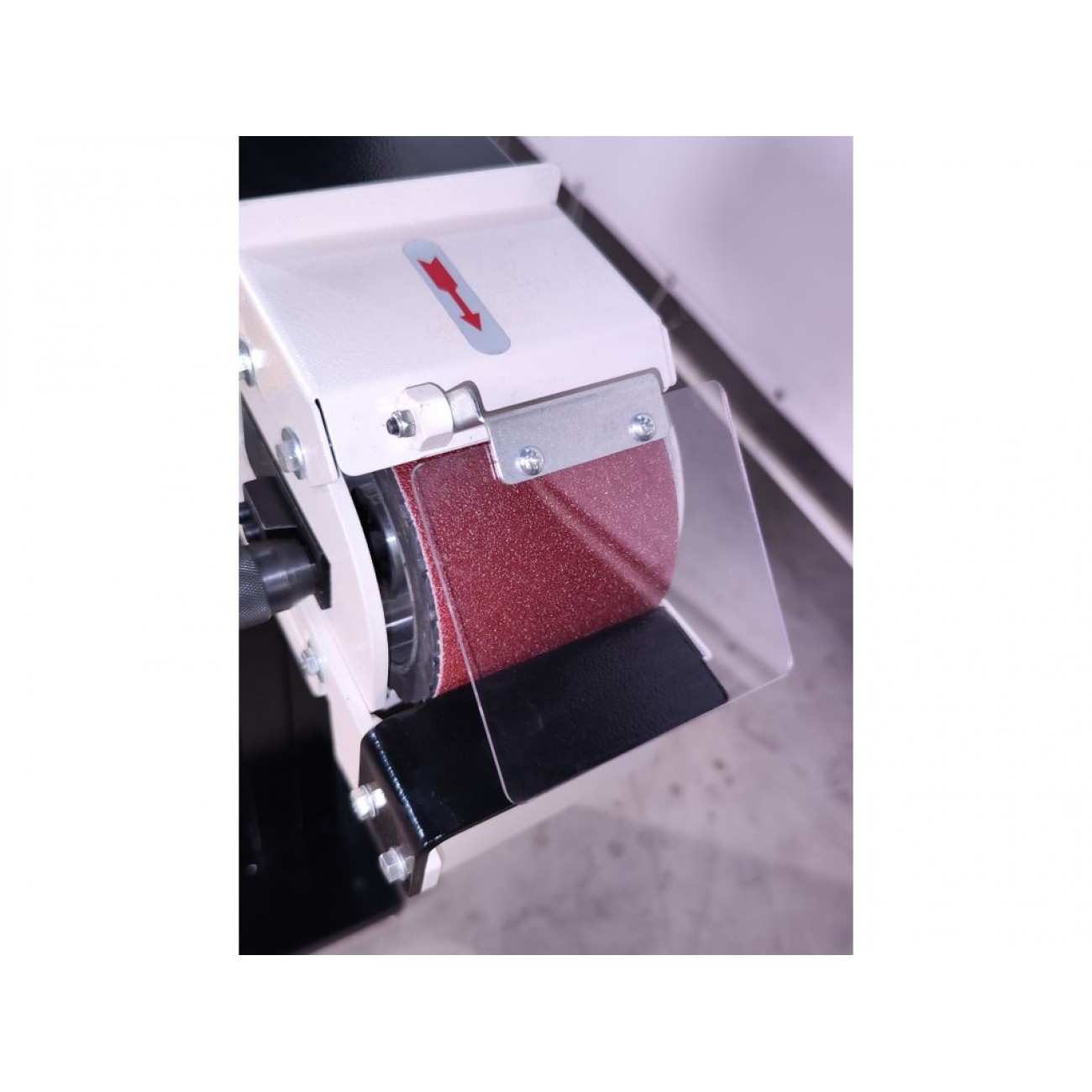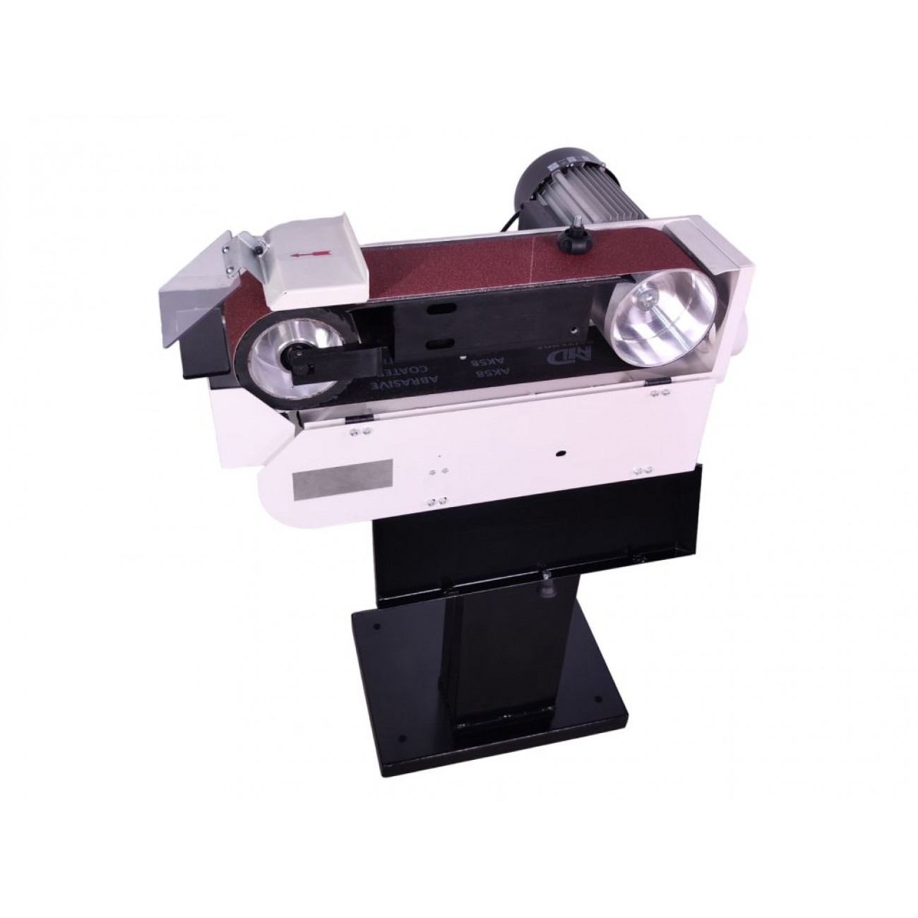 Верстат має 2 робочі зони - спереду для чистової обробки торців і зверху для усунення дефектів і нерівностей поверхні. Рух шліфувальної стрічки здійснюється по роликах з гумовим покриттям. Стрічку можна легко замінити на більш чи менш абразивну. Для зменшення паразитного тертя під стрічкою розміщена графітова підкладка. Виготовлена з міцної листової сталі конструкція забезпечує стабільну роботу при будь-яких навантаженнях. Компактний розмір дозволяє зручно використовувати верстат в умовах обмеженого простору. Замовити цей шліфувальний верстат ціна якого дуже приємна, можна на сайті KMA.UA.