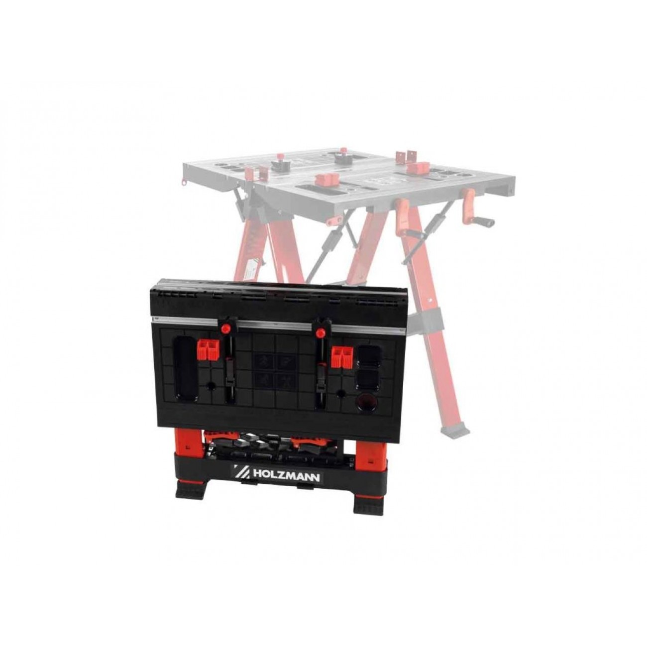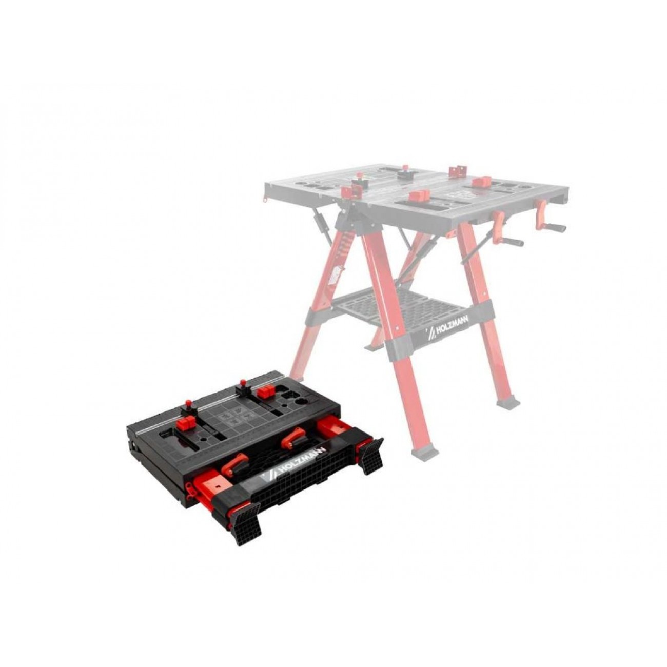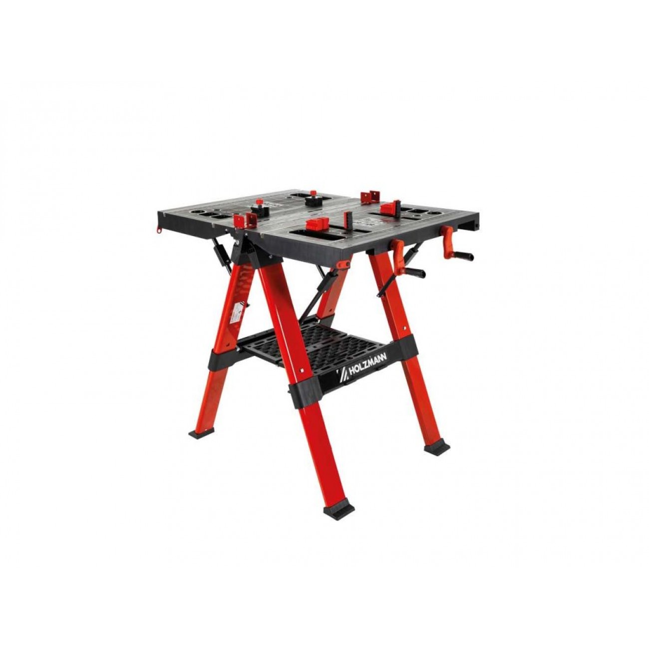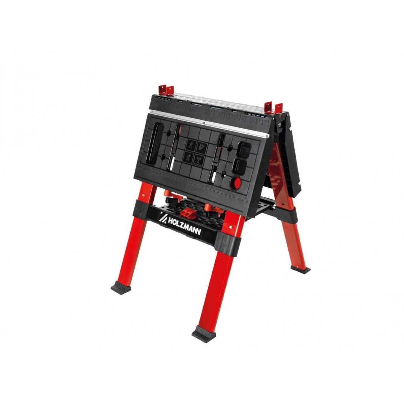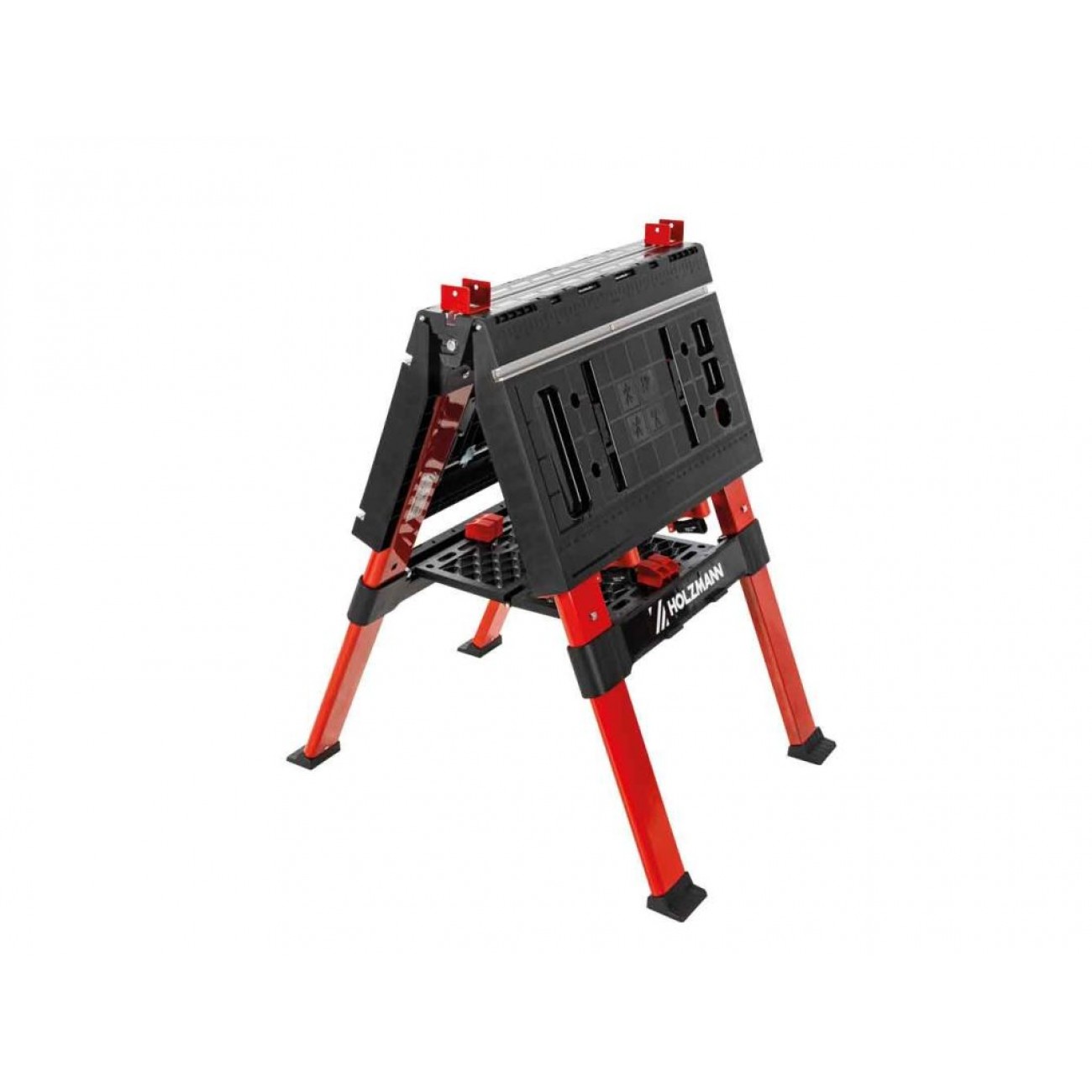 Універсальна підставка Holzmann WST100SOLID - це багатофункціональне обладнання для майстерні, яке може використовуватися як робочий стіл для фіксації інструментів, затискний стіл для фіксації заготовок під час обробки, естакада, полиця та опорна підставка. Швидко складається і розкладається без потреби в застосуванні інструментів і у складеному вигляді займає мало місця, що забезпечує зручність транспортування і зберігання.