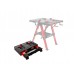 Розмір робочої поверхні становить 820x630 мм, висота столу регулюється на 2 рівні - 545 мм та 810 мм. Максимальне навантаження у форматі робочого столу становить 200 кг, у формі естакади - 350 кг. Підставка комплектується затискачами з ходом 650 мм. Робоча поверхня оснащена лотком для зберігання дрібних деталей. Цей верстак-підставка багатофункціональний має роз’єм, який дозволяє з’єднати кілька підставок для створення великої робочої зони.