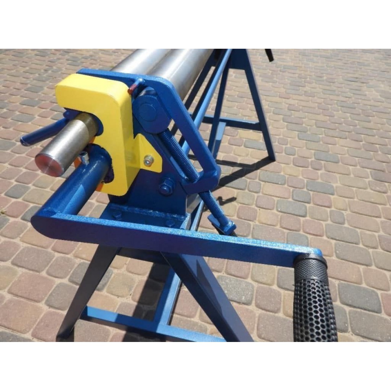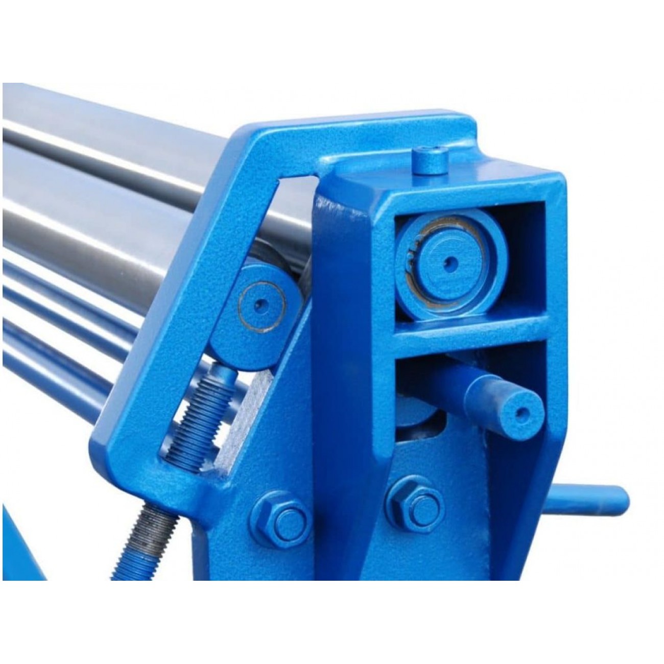 Верстат має три валки діаметром 60 мм з гладкою, полірованою поверхнею. Два нижні вали приводні, а верхній - притискний. Верхній вал регулюється по висоті для зміни радіуса згину і знімний з однієї сторони для легкого зняття заготовки. Управління згинанням здійснюється шляхом обертання важеля. Ручний привід дозволяє максимально контролювати процес обробки, а проста експлуатація і незалежність від зовнішніх джерел живлення роблять це обладнання надзвичайно зручним і практичним. Ручний вальцювальний верстат Prod-masz ZW 1300/0,8 буде ідеальним варіантом для невеликих виробництв і майстерень.