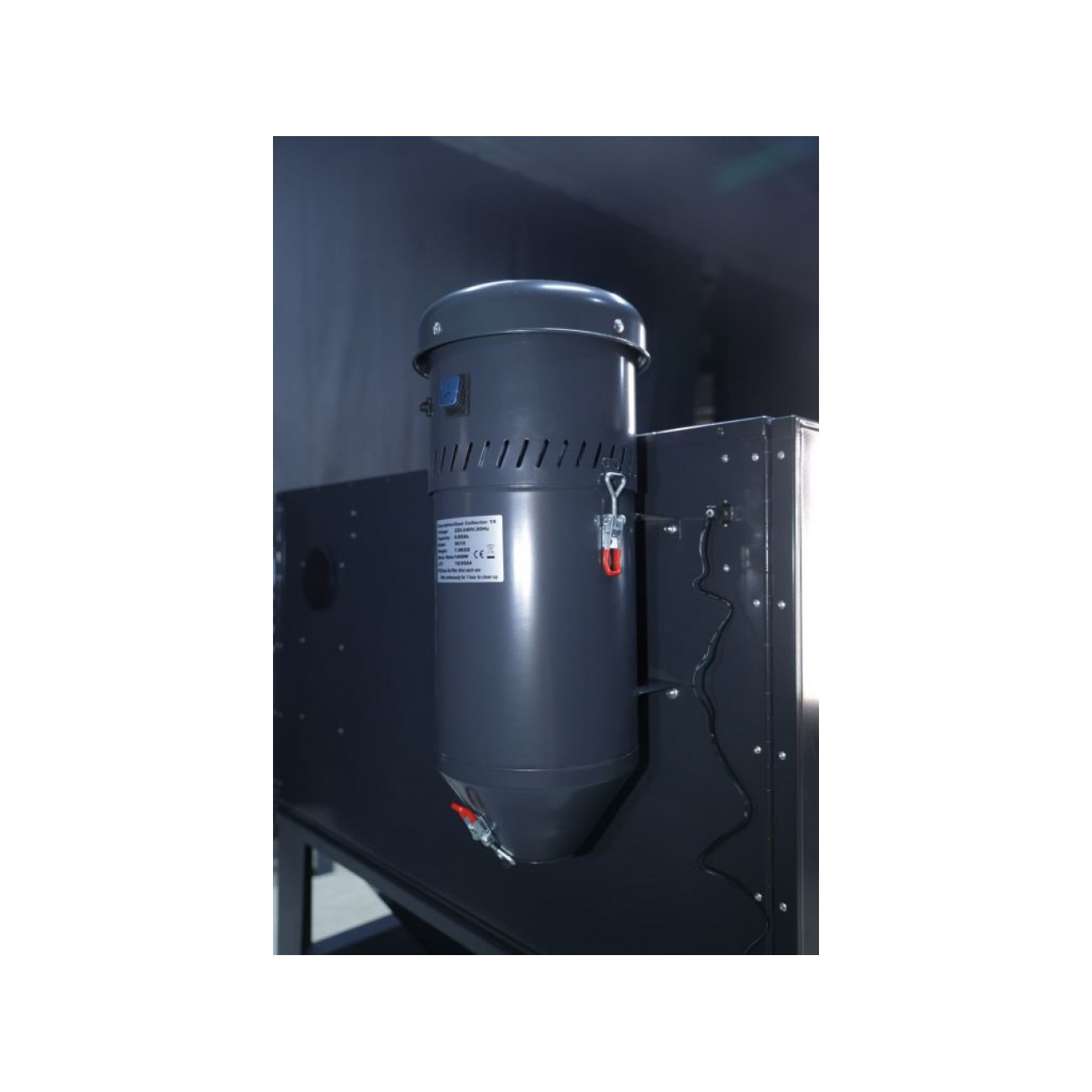 Витяжна система для піскоструминної камери MAST DC15 з продуктивністю 3 м³/хв і потужністю екстракції 1450 Вт забезпечує ефективне видалення пилу та легкого абразиву всередині камери, що покращує видимість робочої зони і результат обробки, а також підвищує комфорт роботи оператора. Оснащена високоефективним циклонним фільтром, який вловлює до 99% пилу та абразиву. Фільтр можна швидко і легко очистити.