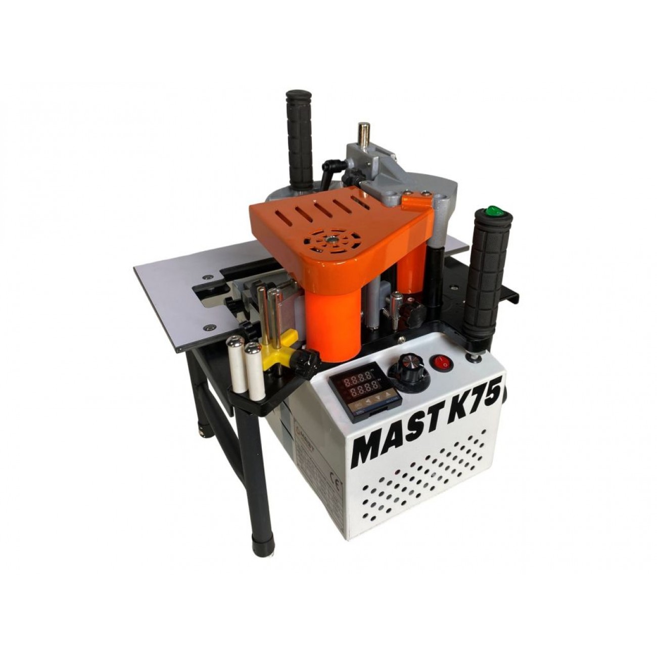 Ручний кромкоклеючий верстат MAST Holztechnik K75 призначений для облицювання прямолінійних і криволінійних меблевих деталей ПВХ, ABS і меламіновою кромкою товщиною 0,3-3 мм, шириною 10-55 мм. Може використовуватися як портативний пристрій і як стаціонарний верстат (стіл для встановлення доступний до замовлення опційно). Працює від мережі 230 В.