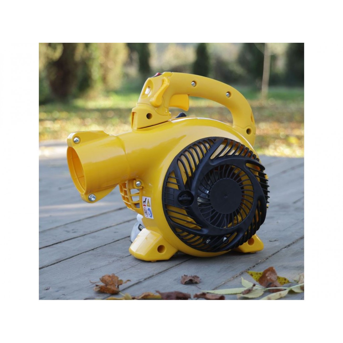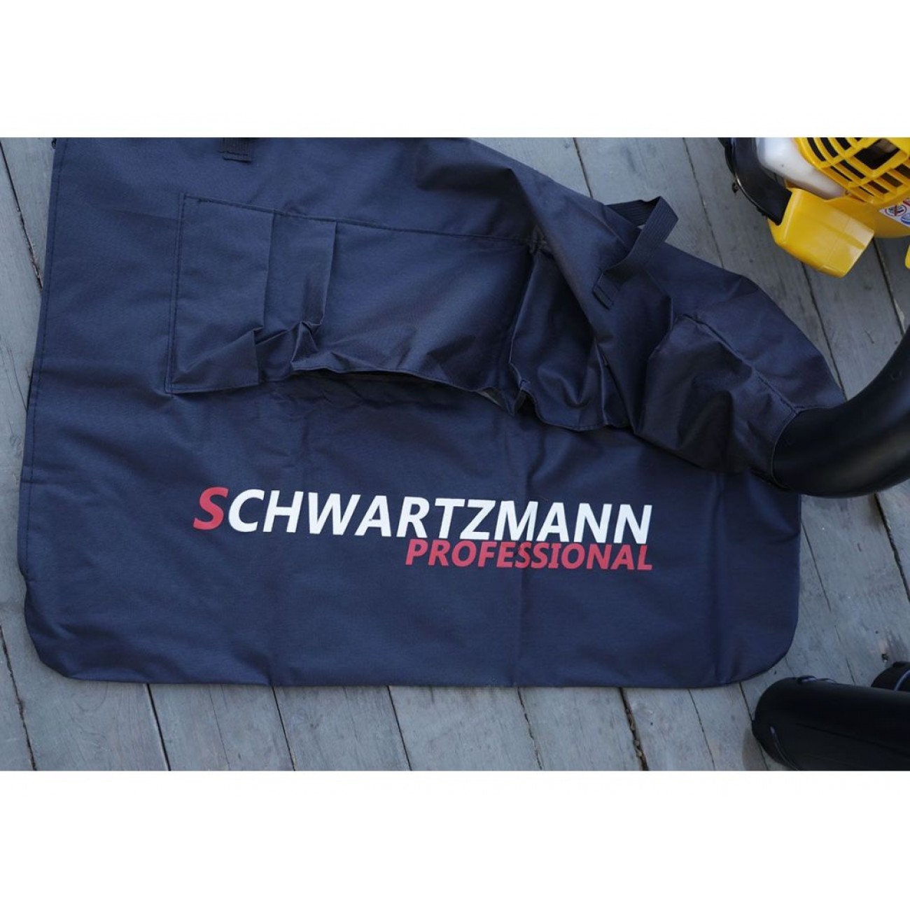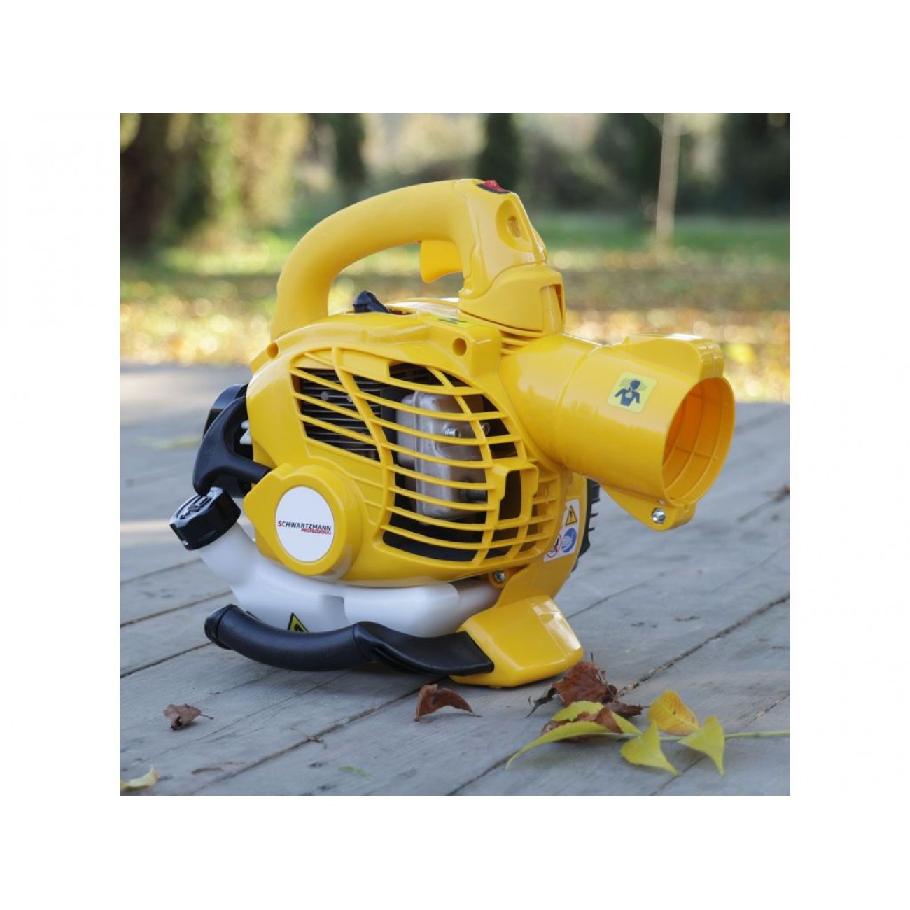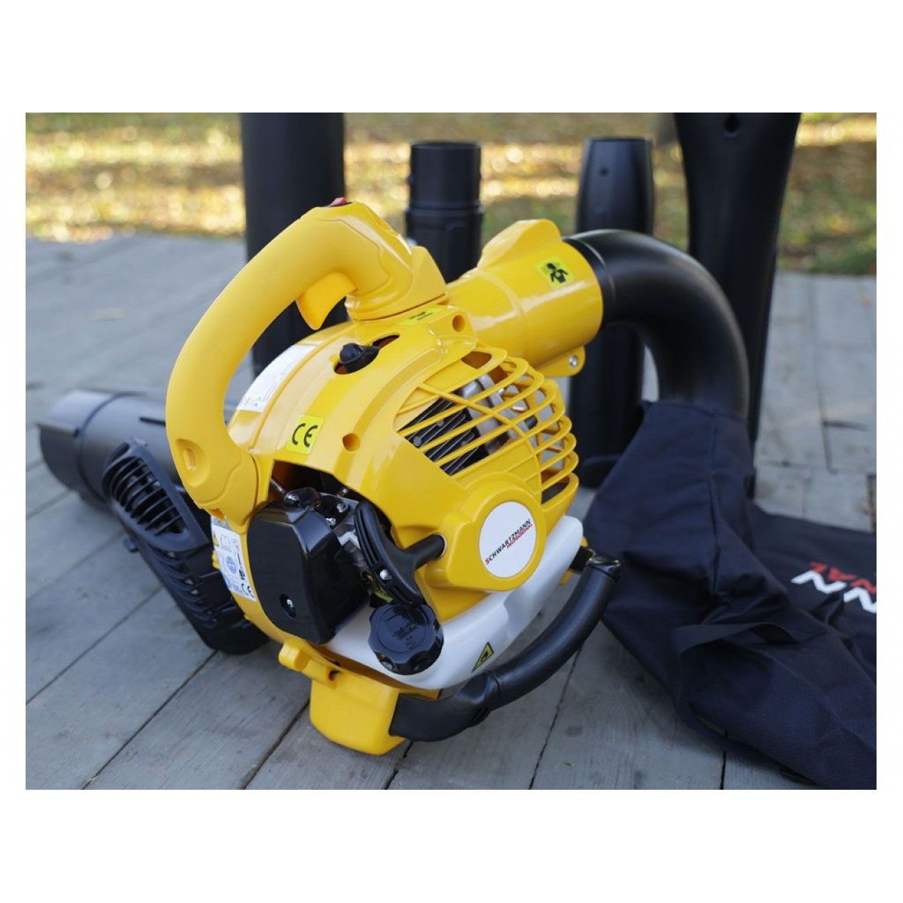 Садовий пилосос-повітродувка (3 кВт) SCHWARTZMANN SCH-BV3500 - високопродуктивна садова повітродувка побутового класу, призначена для легких і середніх навантажень під час прибирання садових ділянок від листя і сміття. Інструмент обладнано 2-тактним бензиновим двигуном з потужністю 3 кВт (4,1 к.с), завдяки якому на виході повітродувка видає 730 м³/год повітря зі швидкістю 370 км/год. Як паливо використовується суміш бензину з моторним мастилом у пропорції 40:1 (на 1 л бензину 25 мл мастила).