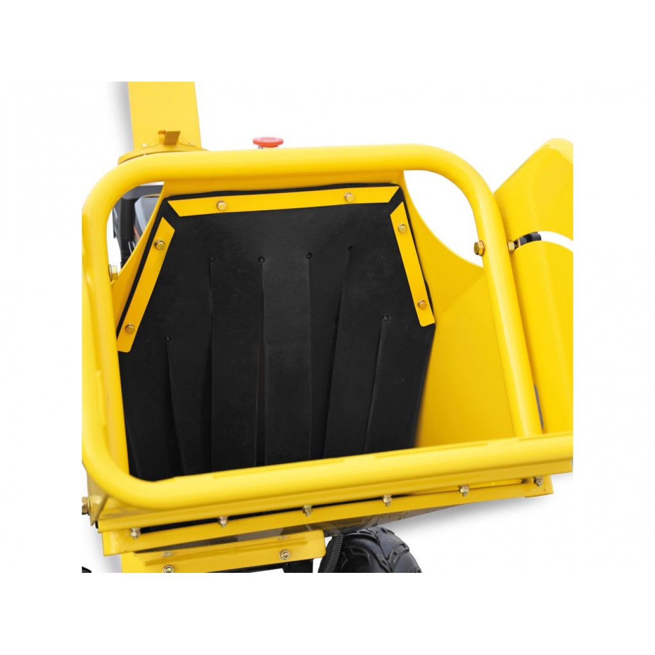 - Бункер подрібнювача, завдяки своєму становищу, дозволяє легко вставляти гілки, вони автоматично втягуються за допомогою дробильної системи;