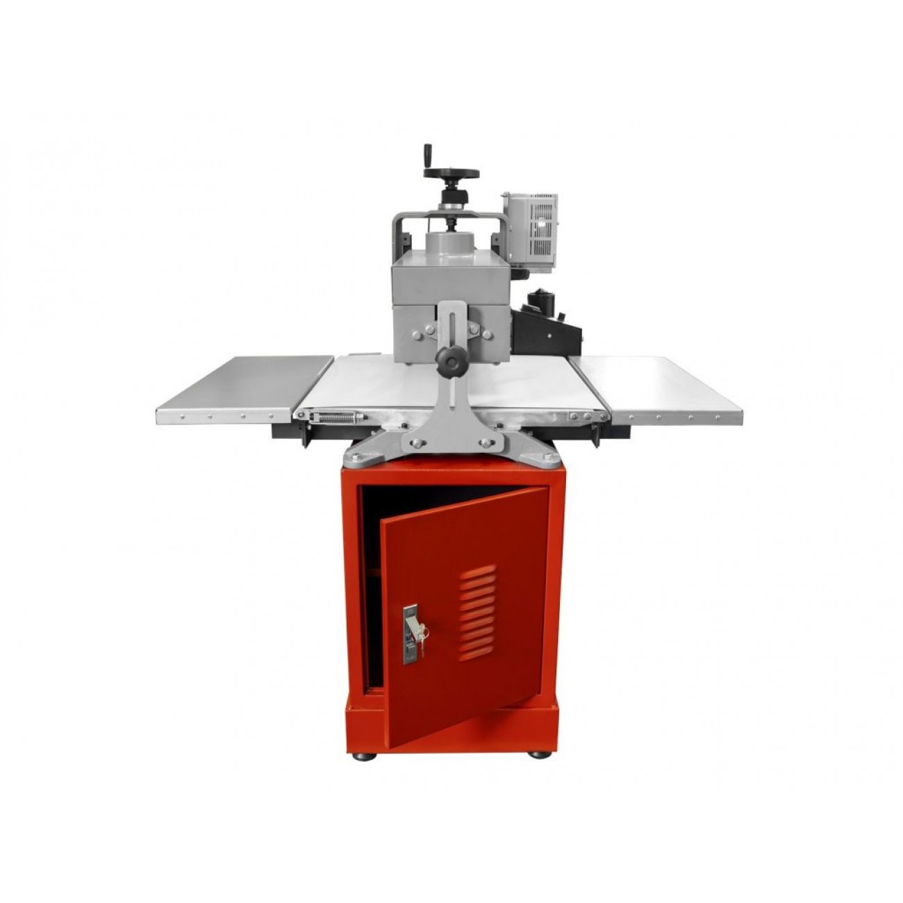 Жорстка конструкція з чавунною основою та кронштейном кріплення консолі забезпечує високу точність і повторюваність. Завдяки цьому верстат буде ефективним для серійного виробництва. Швидкість подачі заготовки регулюється потенціометром у діапазоні 0-3 м/хв. Натяг шліфувальної стрічки можна регулювати за допомогою пружинної системи. Робочий стіл має розширення на вході і виході. В опорній основі є шафа для інструментів і аксесуарів.