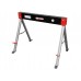 Ніжки зі стійкою опорою можна легко прибирати та транспортувати завдяки складним ніжкам і ручці. Ніжки повністю ховаються в корпус. Розміри виробу у відкритому стані: 1015x675x730 мм, у закритому стані: 1015x103x120 мм. Поєднання двох пильних коней дозволяє створити стійку робочу поверхню (додаткові матеріали, такі як стільниця, не входять до комплекту). Максимальне навантаження на одну пилку становить 500 кг.