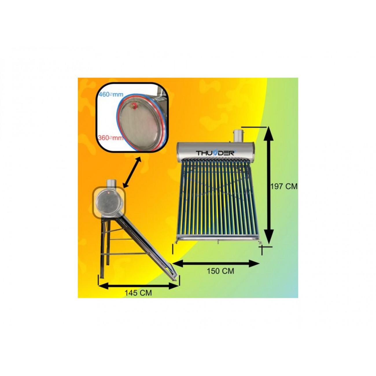 Сонячний колектор THUNDER KSB-200L - це пристрій, який використовує сонячну енергію для нагрівання води. Він є екологічно чистим та ефективним способом зменшення рахунків за електроенергію та викидів шкідливих газів в атмосферу. Колектор складається з вакуумних труб, які поглинають сонячні промені та перетворюють їх у тепло, передаючи його до резервуару для води. Одна вакуумна трубка відповідає за нагрівання максимум 10 л води. Перевагами сонячного колектора є його екологічність, економія енергоресурсів, простота монтажу, довговічність, висока ефективність та відсутність витрат на технічне обслуговування.