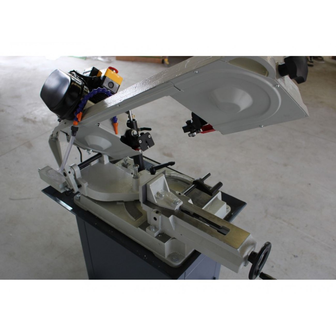 Здатність різати під кутами є незамінною функцією верстату, дана модель обладнана поворотною головою. На відміну верстату з поворотними тисками, на верстаті з поворотною ріжучою головою заготовку не потрібно повертати навколо верстату. Це дуже актуально для заготовок великої довжини. Також поворотна голова дозволяє досягти кращої точності кута різу. Поворотну голову гармонічно доповнює ексцентриковий зажим тисків, що дозволяє після регулювання тисків швидко зафіксувати або відпустити заготовку без повторного регулювання, що напряму збільшує ефективність роботи верстата.