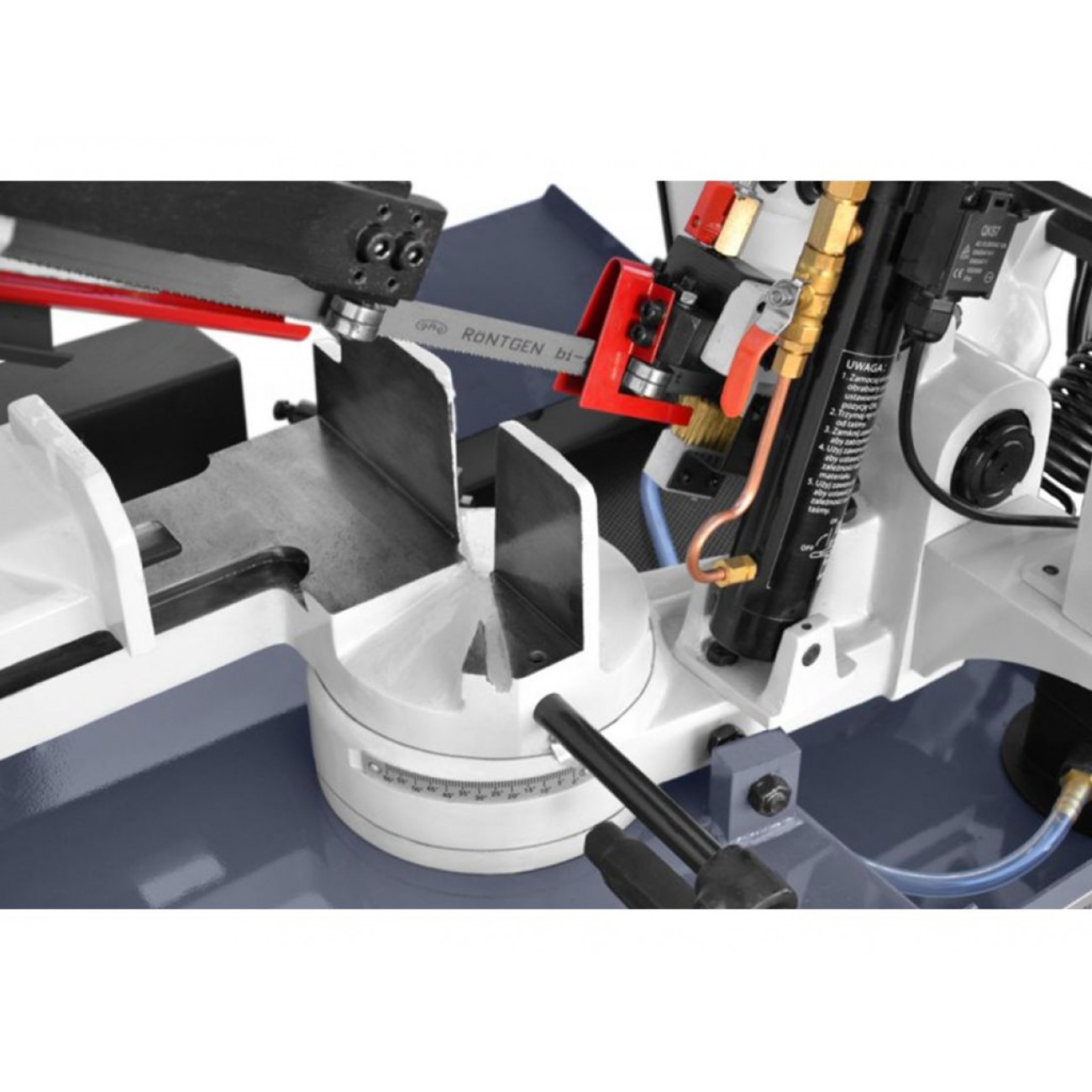 Безпека понад – усе! Запобіжні пристрої в стрічкових пилах для металу є важливою частиною системи безпеки та призначені для захисту оператора та самого обладнання від небезпек та непередбачених ситуацій. Система автоматичного вимикання після закінчення різу заготовки, виконується за допомогою кінцевого вимикача. Це вимоги згідно європейських норм безпеки для працюючого персоналу. Також присутні аварійні вимкнення при виявленні небезпечних умов, таких як перегрів, перевантаження чи інші аварійні ситуації.