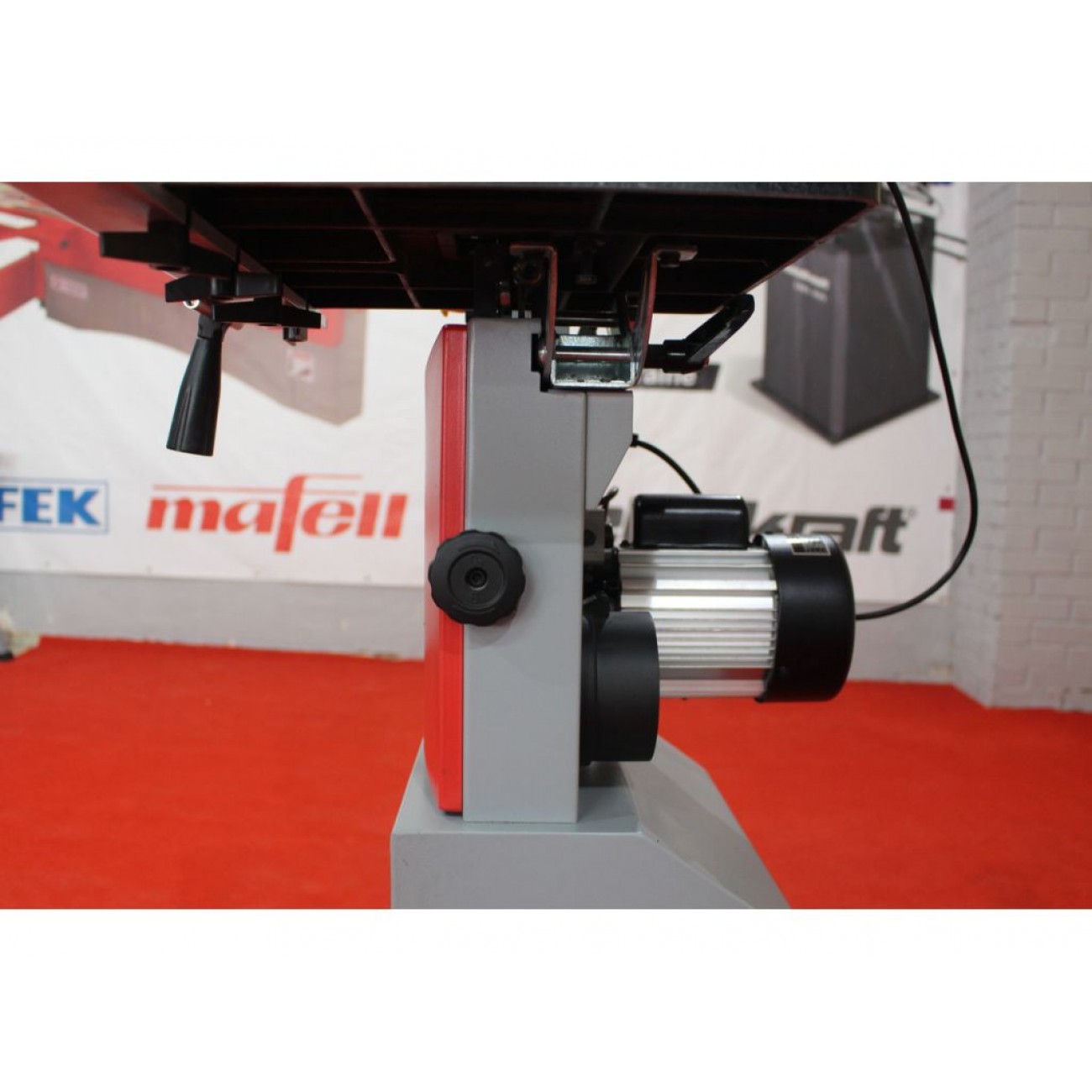 Литий робочий стіл виготовлений із міцного чавуну і має кут нахилу від 0 до 45 градусів. Швидкість руху ріжучої стрічки регулюється на два рівні - 400 м/хв і 800 м/хв. Є вихід для підключення аспірації. Шківи з литого алюмінію з гумовим покриттям забезпечують тривалу службу обладнання.