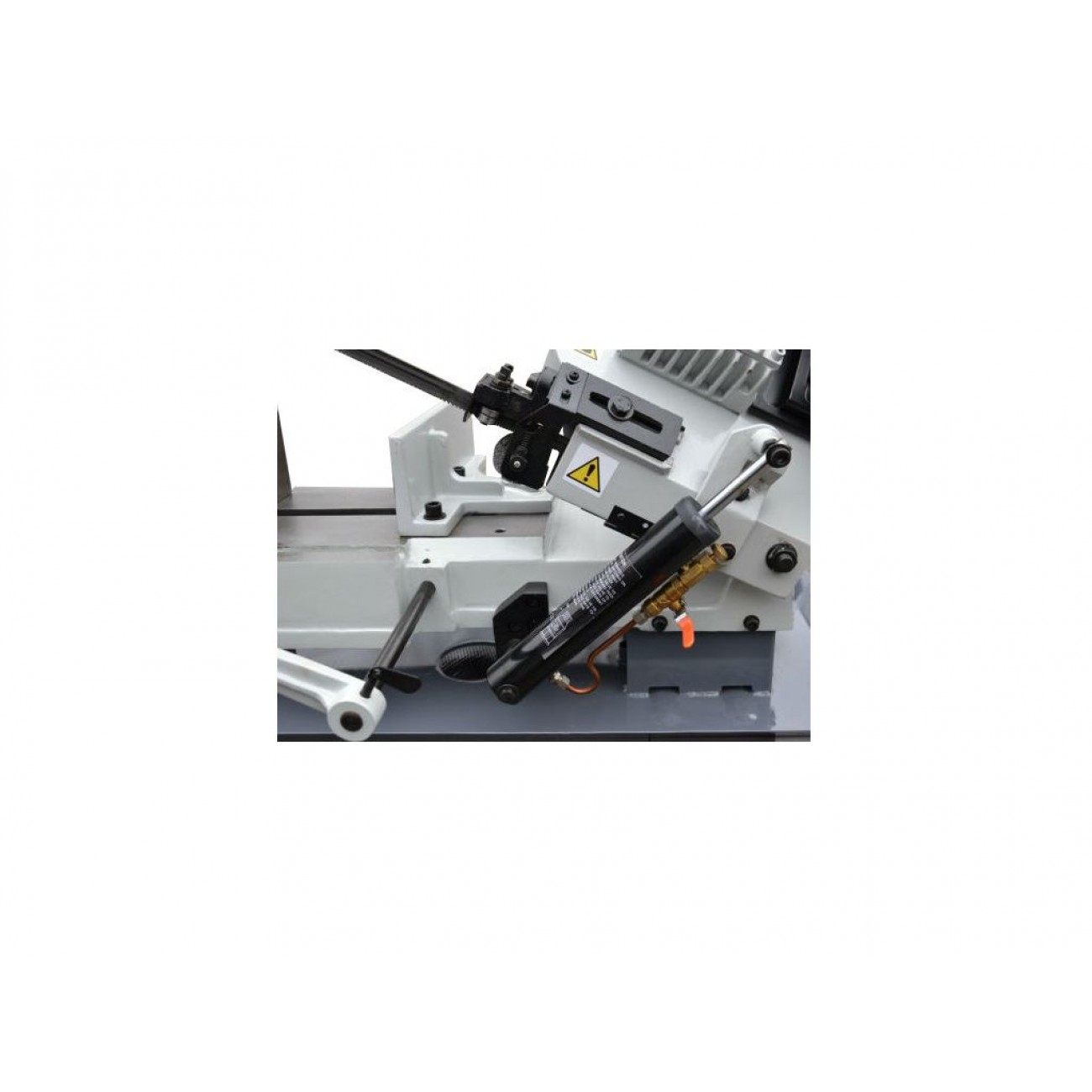 Гідроциліндр, який використовується для опускання голови стрічкової пили, забезпечує плавне та контрольоване опускання, що дозволяє точно контролювати процес різання. Також гідроциліндр дозволяє зафіксувати ріжучу голову на довільній зручній для конкретної заготовки висоті, щоб початок опускання голови відбувався безпосередньо над заготовкою, а не від крайнього верхнього положення