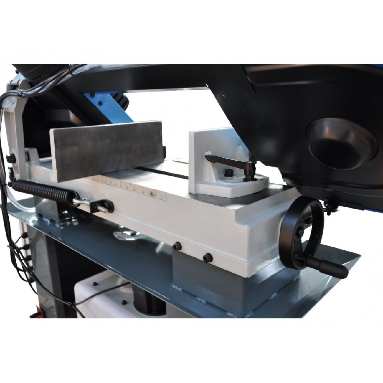 Здатність різати під кутами є незамінною функцією верстату, дана модель обладнана поворотними тисками. Завдяки простоті конструкції має доступнішу ціну порівняно з пилами з поворотною ріжучою головою. Використовується на виробництвах, де виконується різ як правило під прямим кутом і іноді під іншими кутами.