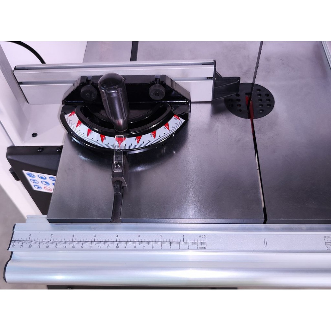 - Поздовжній упор, оснащений лінійкою з віддзеркаленою розміткою