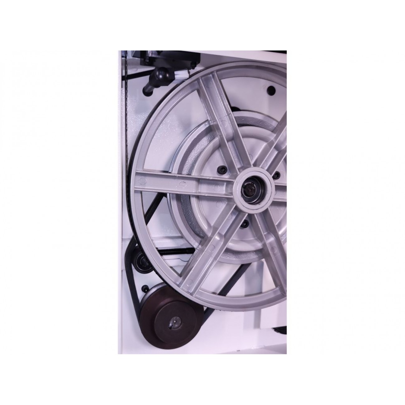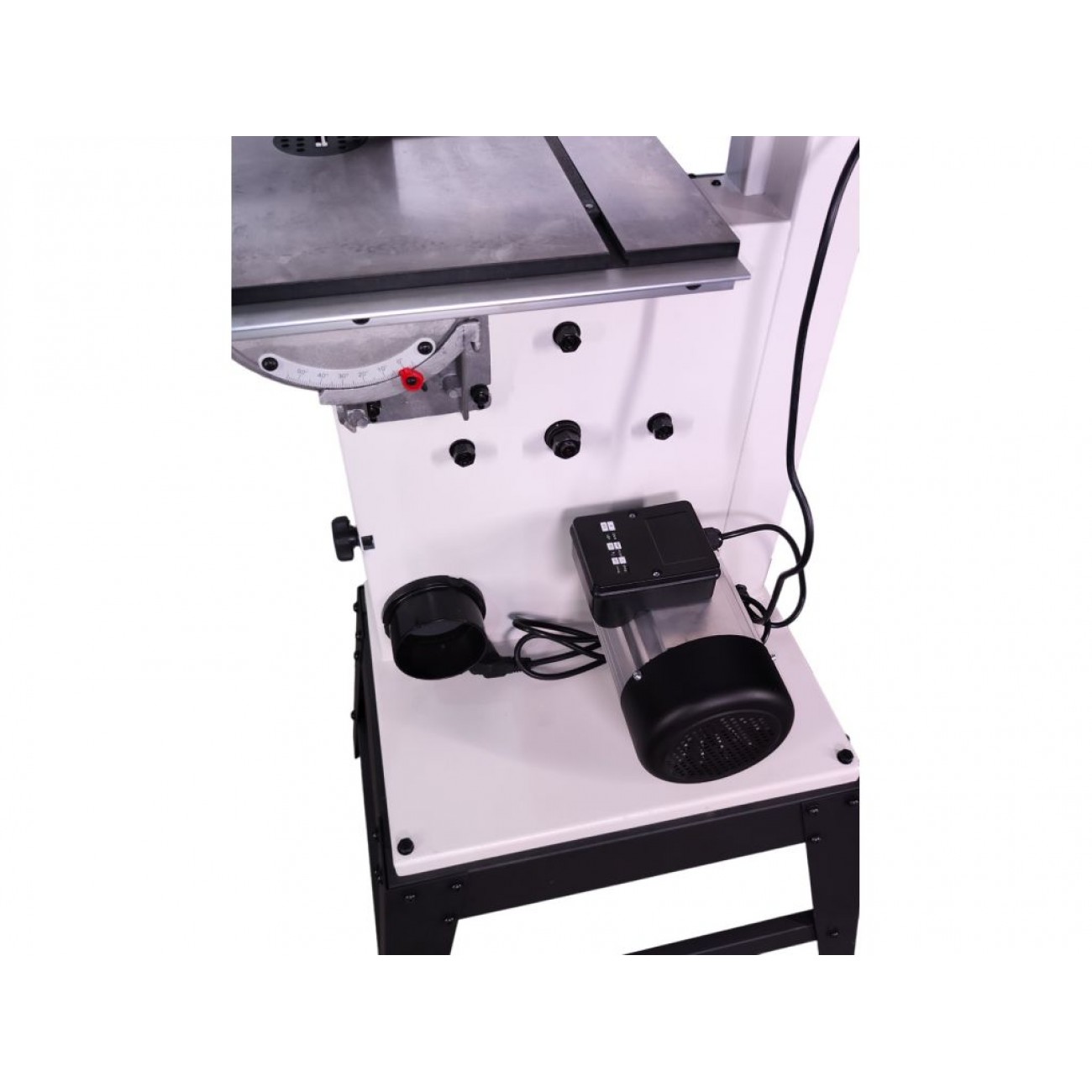 Верстат оснащений індукційним двигуном потужністю 1 кВт, який забезпечує ефективну роботу на двох швидкостях - 7 і 14 м/с. Конструкція з листового металу стійка і міцна, робочий стіл і шківи суцільнолиті, що гарантує стабільність і точність робочого процесу. Нахил столу під кутом до 45 градусів дозволяє якісно здійснювати різи різної складності. Є два виходи під аспірацію. Замовити MAST Holztechnik H-BS350 ви можете через сайт деревообробне обладнання Україна KMA.UA.