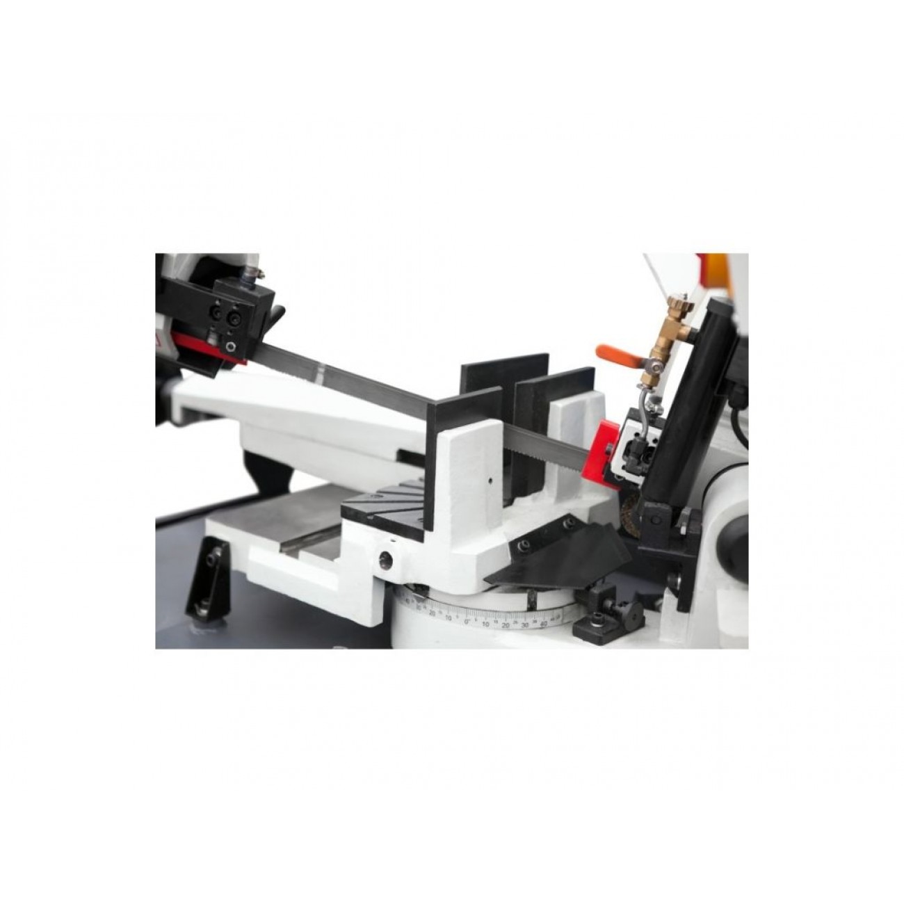 Потужний, великий стрічкопильний верстат для різання металу, з поворотною рамою дозволяє на різання в площині перпендикулярній до осі розрізається і під будь-яким кутом в діапазоні від -45° в ліво до 60° в право.