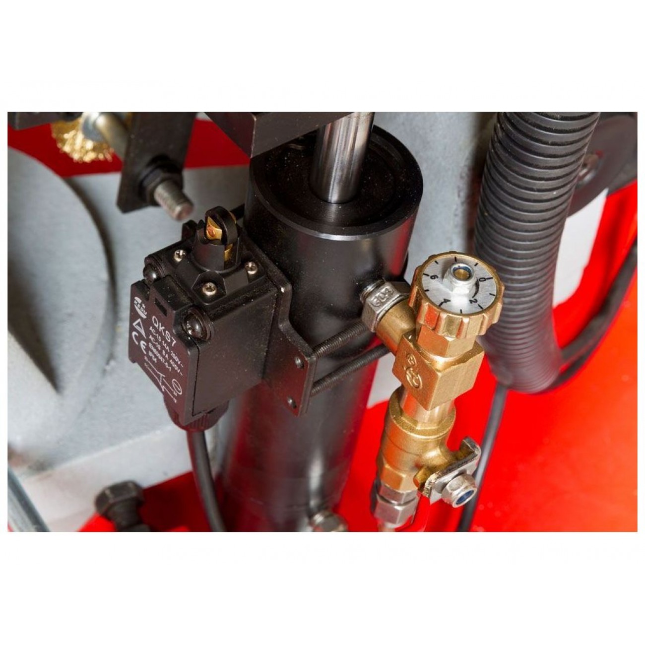Гідроциліндр, який використовується для опускання голови стрічкової пили, забезпечує плавне та контрольоване опускання, що дозволяє точно контролювати процес різання. Також гідроциліндр дозволяє зафіксувати ріжучу голову на довільній зручній для конкретної заготовки висоті, щоб початок опускання голови відбувався безпосередньо над заготовкою, а не від крайнього верхнього положення
