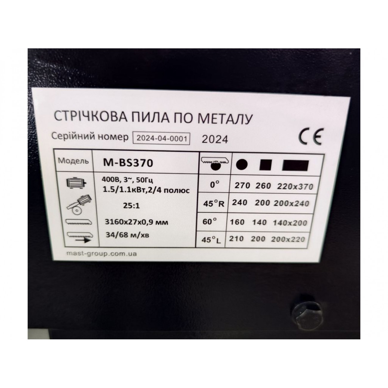 Особливості стрічкової пили по металу MAST Metalltechnik M-BS370 400V