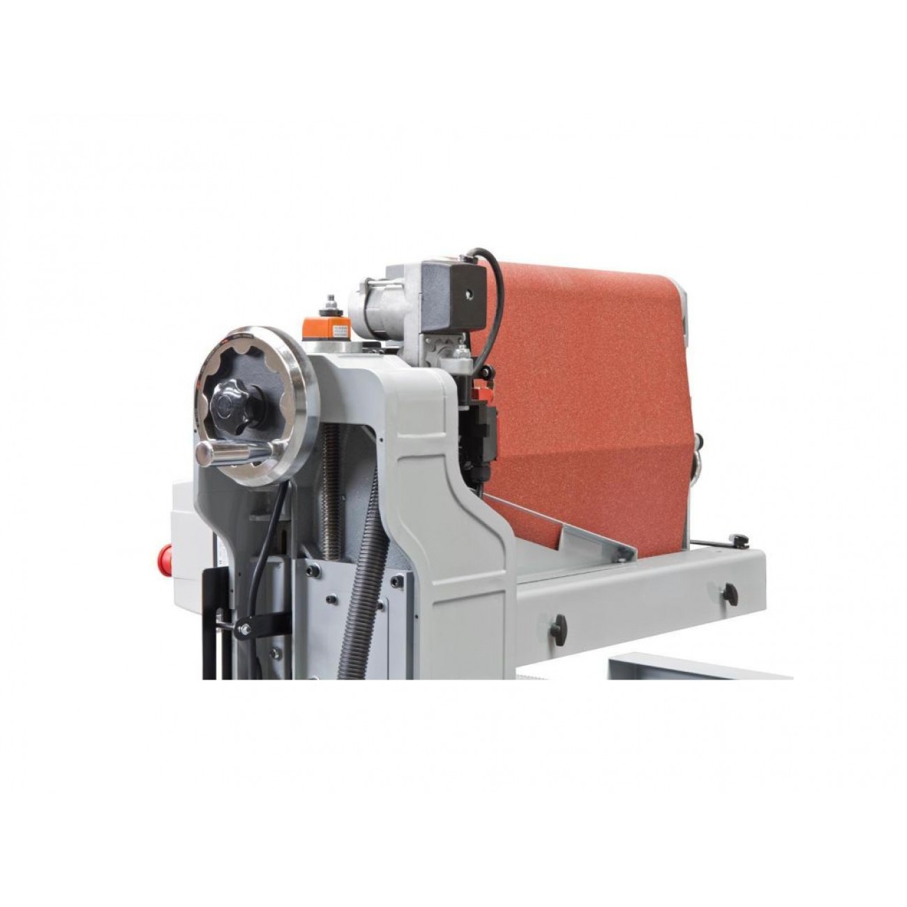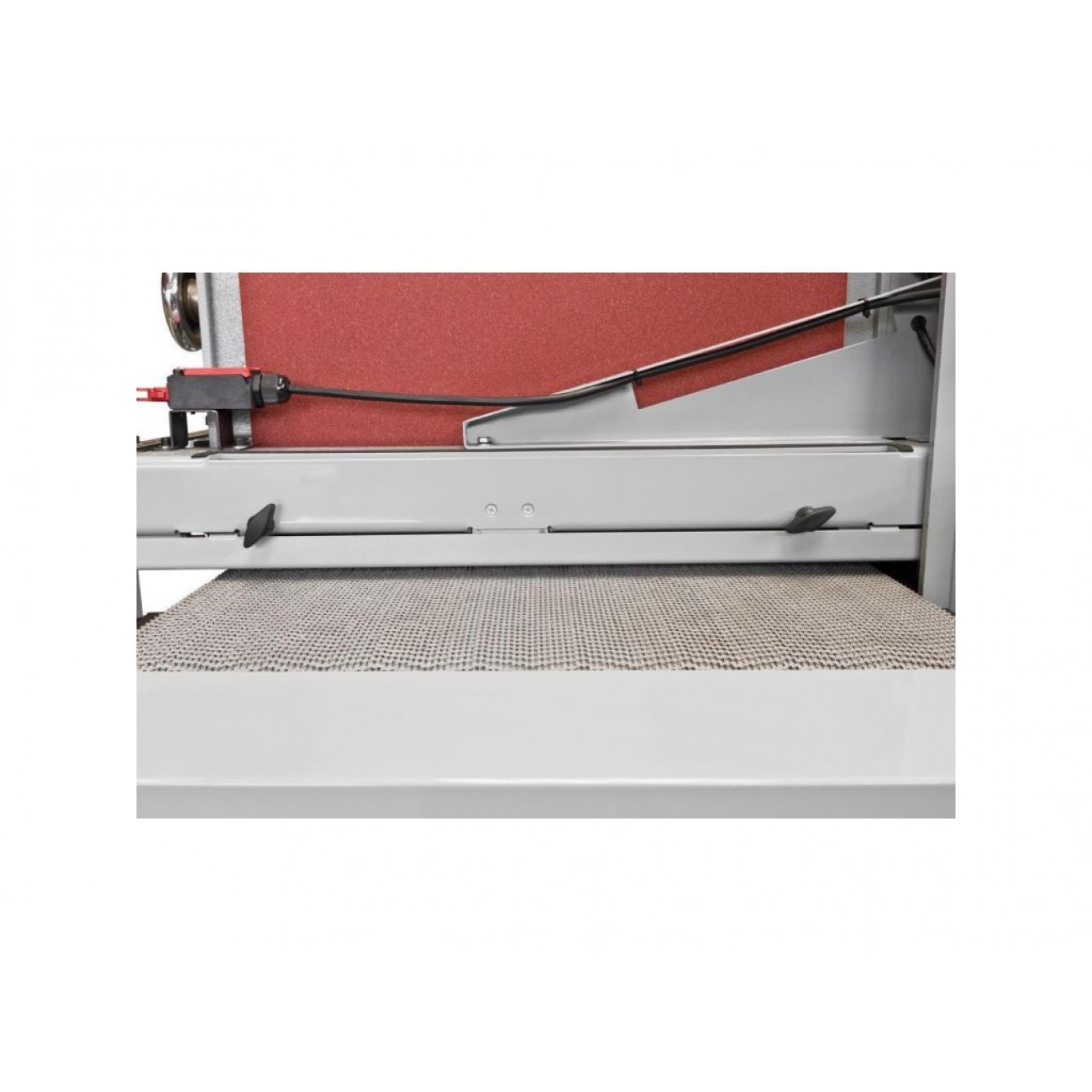 Рівень шліфування регулюється підйомом конвеєрного столу за рахунок обертання великої рукоятки маховика.