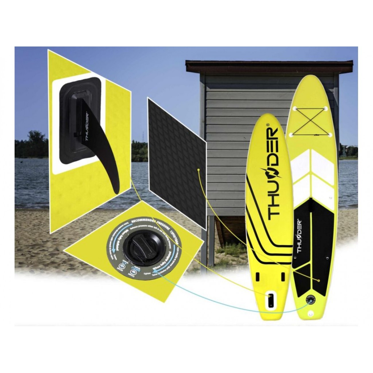 Набір аксесуарів: Дошка з двостороннім насосом, рюкзаком, стріпом безпеки, ремонтним комплектом.