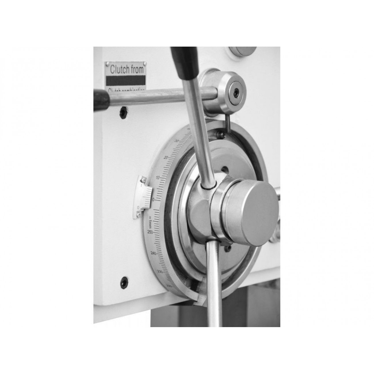 Хід шпинделя 250 мм дозволяє робити глибші отвори, а висока підлогова конструкція зі збільшеним ходом столу по вертикалі - обробляти деталі великого розміру. Автоматична багатошвидкісна подача шпинделя забезпечує точне виконання різних завдань, а 12-ступеневе регулювання швидкості обертання шпинделя у діапазоні 31,5-1400 об/хв дає змогу якісно працювати з матеріалами різної твердості. Верстат також має автоматичну зміну режимів і глибини нарізання різьби. Жорстка, надійна конструкція гарантує стабільність обробки і тривалий термін служби. Це та інше професійне свердлильне обладнання купити можна на нашому сайті KMA.UA.