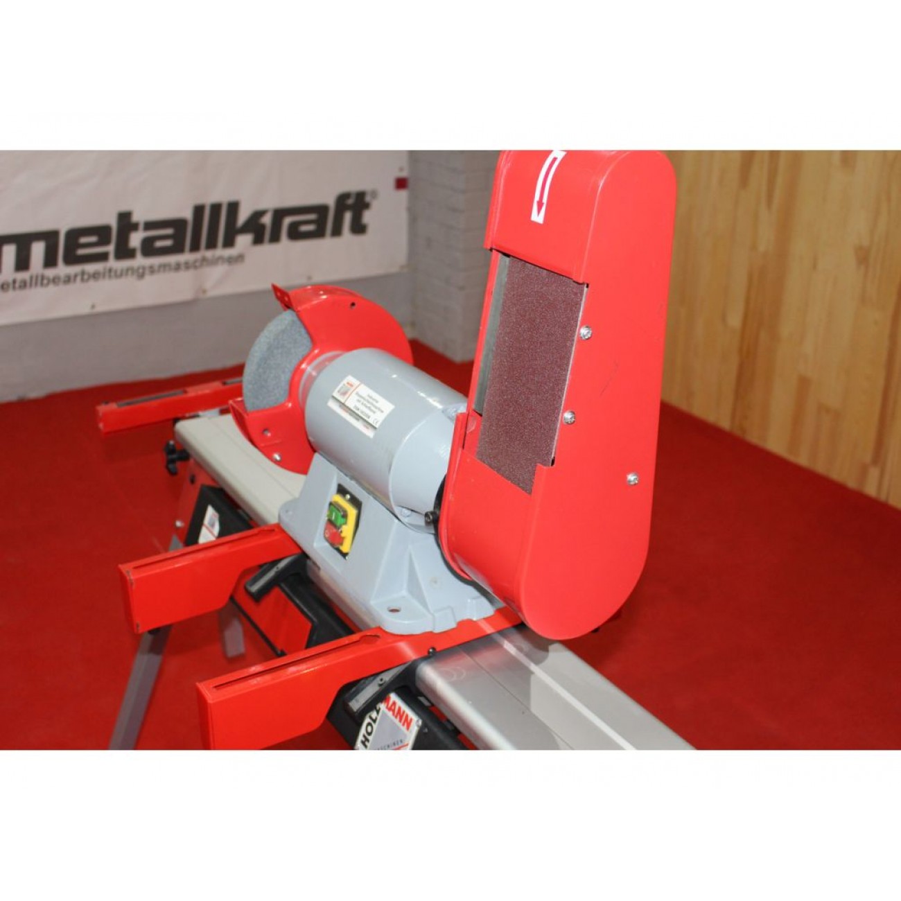 Точильно-шліфувальний верстат Holzmann DSM 100200B призначений для заточування інструменту, шліфування та полірування металевих деталей. Комбінація дискового та стрічкового шліфування значно розширює можливості обладнання, роблячи його універсальним для широкого спектра застосувань у майстернях і невеликих цехах. Працює на базі трифазного двигуна потужністю 900 Вт.