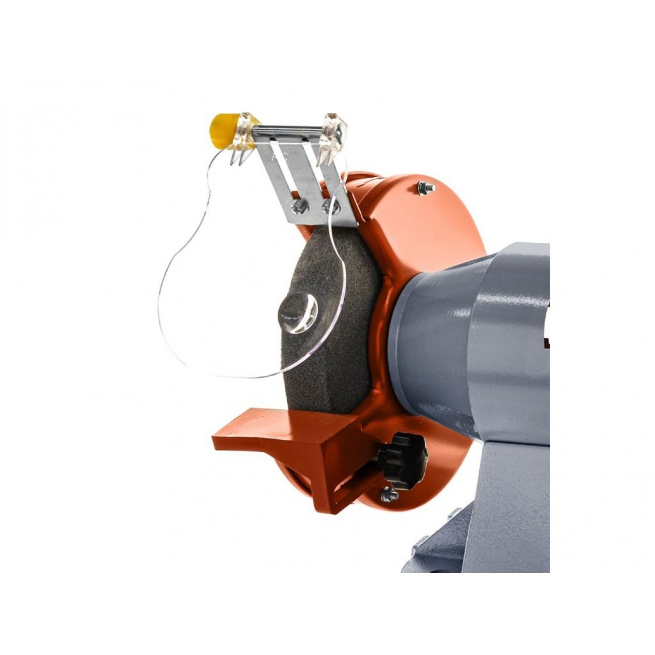 Верстат поставляється з 2 шліфувальними дисками різної абразивності, що дає змогу виконувати грубе і чистове шліфування. Діаметр дисків - 250 мм, швидкість обертання - 2950 об/хв. Литий сталевий корпус з широкою підставою має відмінну стійкість, гасить вібрації та у сукупності з високоточними радіально-упорними підшипниками забезпечує високу якість роботи. Для безпеки оператора верстат обладнаний захисними кожухами дисків та огородженням з плексигласу з функцією лупи. Може бути встановлений на будь-якій робочій поверхні, що забезпечує надзвичайно зручну експлуатацію.Цей заточувальний верстат купити можна в нашому магазині з гарантією і доставкою по Україні.