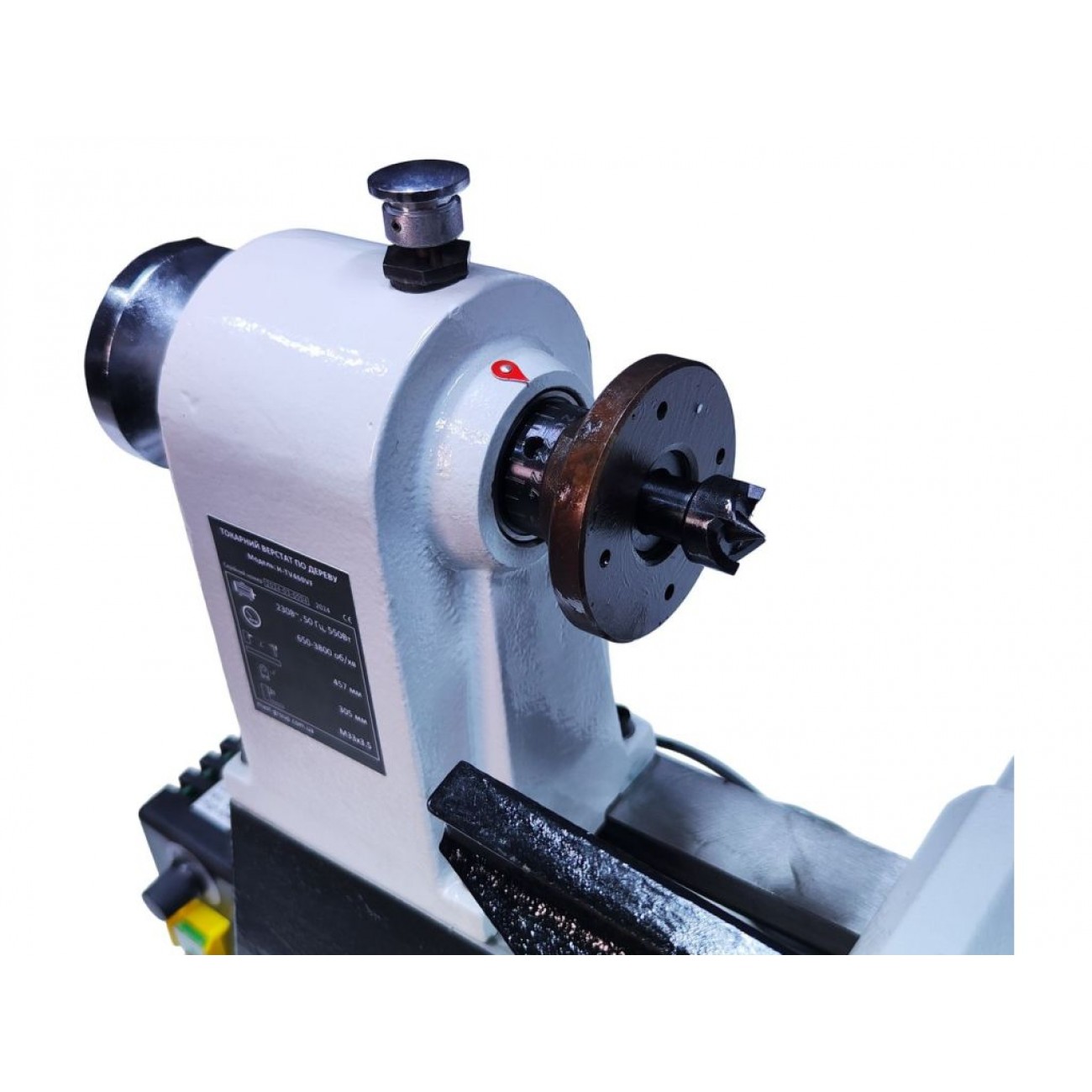 Привід з поліклиновим ременем забезпечує плавність ходу і тиху роботу, а регулювання швидкості шпинделя в діапазоні 650-3800 об/хв дозволяє підібрати оптимальні параметри в залежності від структури і твердості дерева. Потужність двигуна становить 550 Вт. Токарний верстат MAST Holztechnik H-TV460VF  можна замовити через каталог столярні верстати Луцьк KMA.UA.