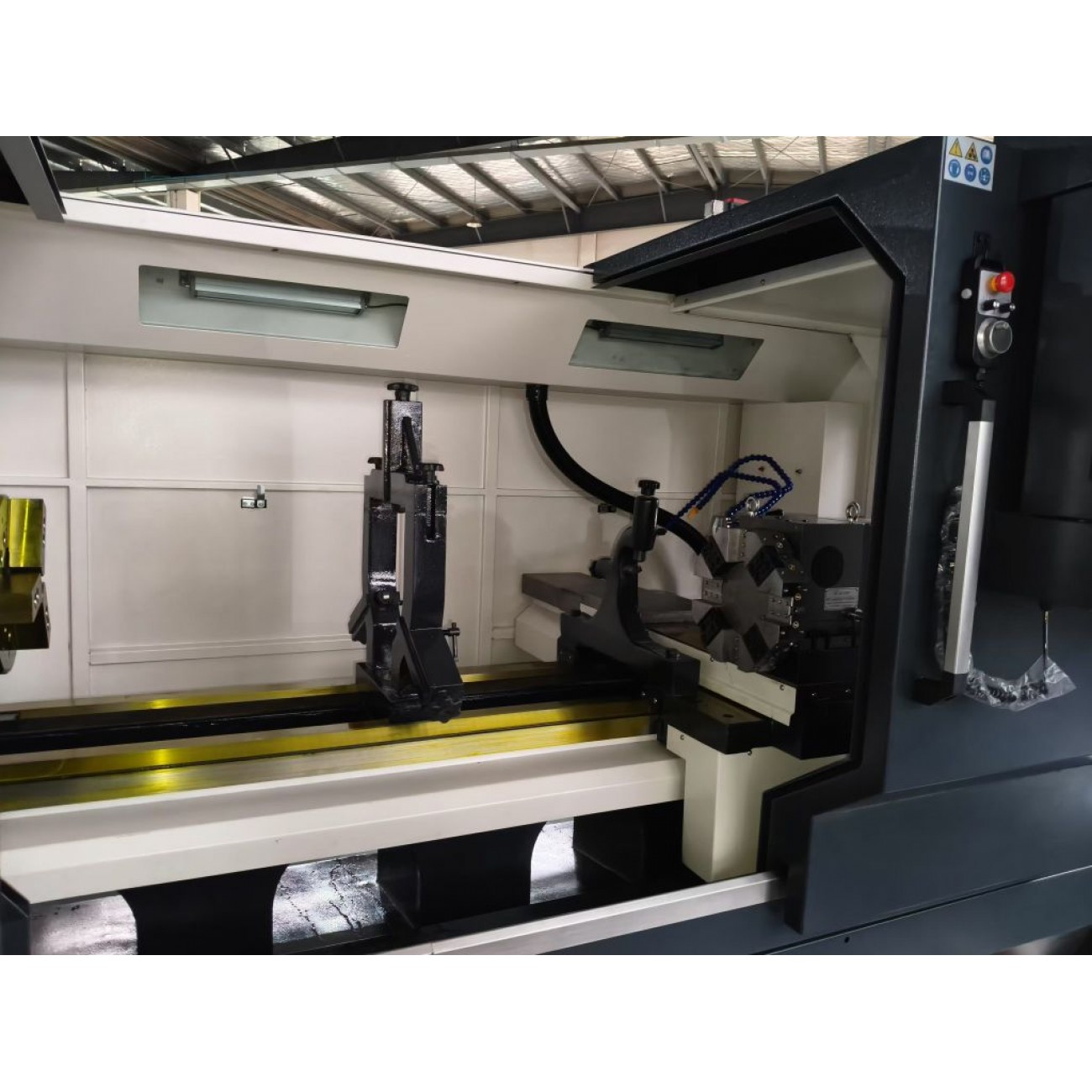 Потужність основного двигуна становить 11 кВт, отвір шпинделя - 105 мм. 8-позиційний револьвер під різці 25х25 мм, вилита єдиним моноблоком станина з чавуну марки аналогу СЧ25, супорт і задня бабка з чавуну СЧ20 забезпечують точне виконання важких завдань і збереження стабільності при інтенсивних навантаженнях. Для зменшення теплового навантаження на електричні компоненти верстат оснащений системою охолодження щита електроніки. Завдяки високій продуктивності, безвідмовності та надійності, цей токарний ЧПК верстат по металу відмінно підходить для серійних виробництв, де є потреба у точній обробці великих партій матеріалу.