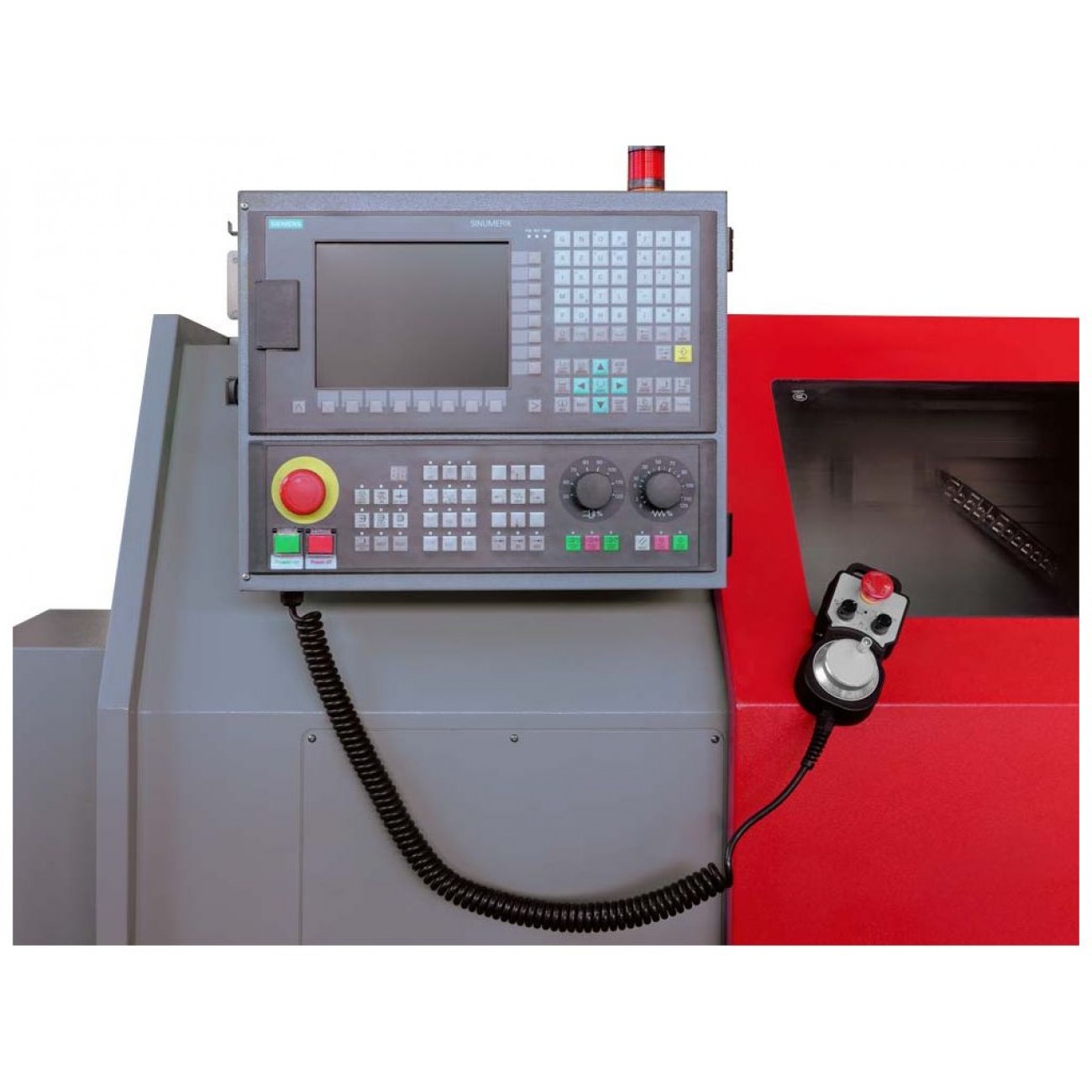 Шпиндель встановлений на прецизійних вальницях і має двигун потужністю 3,7 кВт. Швидкість обертання регулюється у діапазоні 150-2500 об/хв. Швидка подача по осям (X - 4 м/хв і Z- 7 м/хв) забезпечує продуктивну роботу. Верстат обладнаний системою охолодження ЗОР і автоматичною системою змащування. Станина виконана з міцного чавуну, має велику вагу і високу жорсткість. Цей токарний верстат з ЧПУ має високу функціональність і надійність, що підтверджується гарантією на 24 місяці.