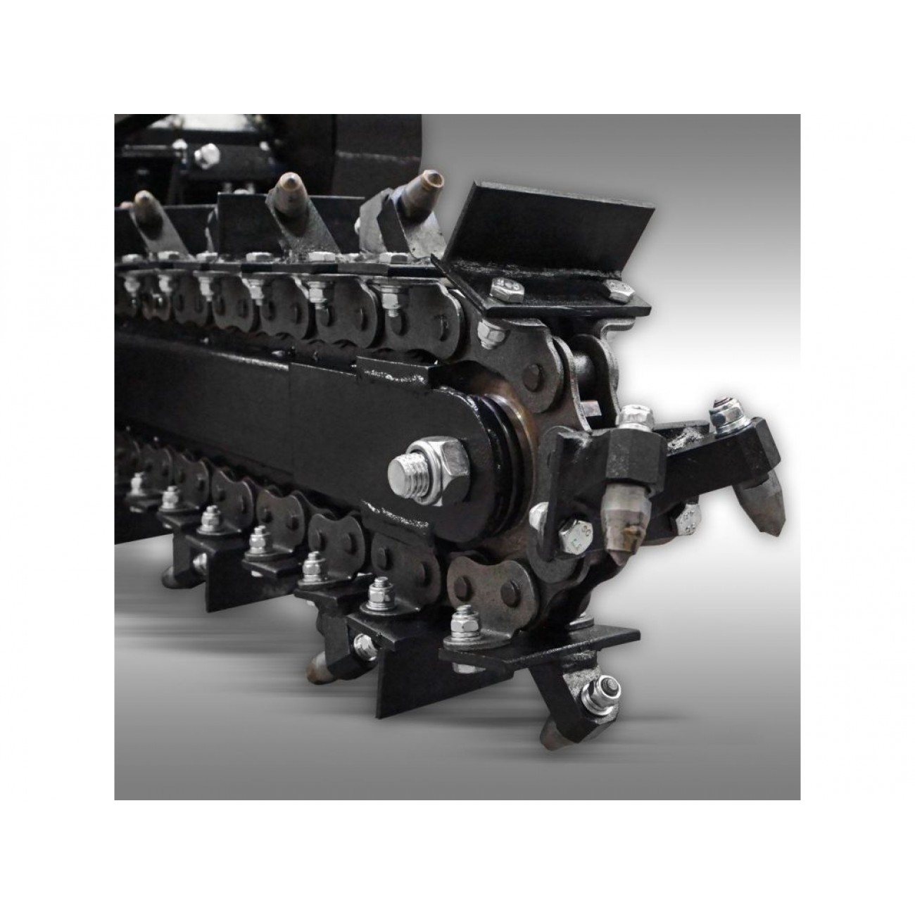 Ріжучі ланцюги з 27 формуючими лезами пригвинчуються до міцного копального ланцюга та можуть бути замінені окремо. Довге лезо забезпечує максимальну глибину різання 60 см. Викопаний матеріал зміщується в сторону за допомогою гвинтового конвеєра. Можлива продуктивність  до 60 м/год.