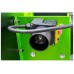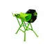 Для регулювання довжини різу використовується механічна упорна планка, яку можна пересувати і фіксувати у потрібному положенні. Пила активується лише при одночасному натисканні 2 кнопок, що унеможливлює випадковий запуск. Для більшої безпечності використання є захисний кожух пильного диска і електронне гальмо для швидкої зупинки. За рахунок складаної конструкції, невеликої ваги і ручок для переміщення ця пила дроворіз може легко транспортуватися і компактно зберігатися.