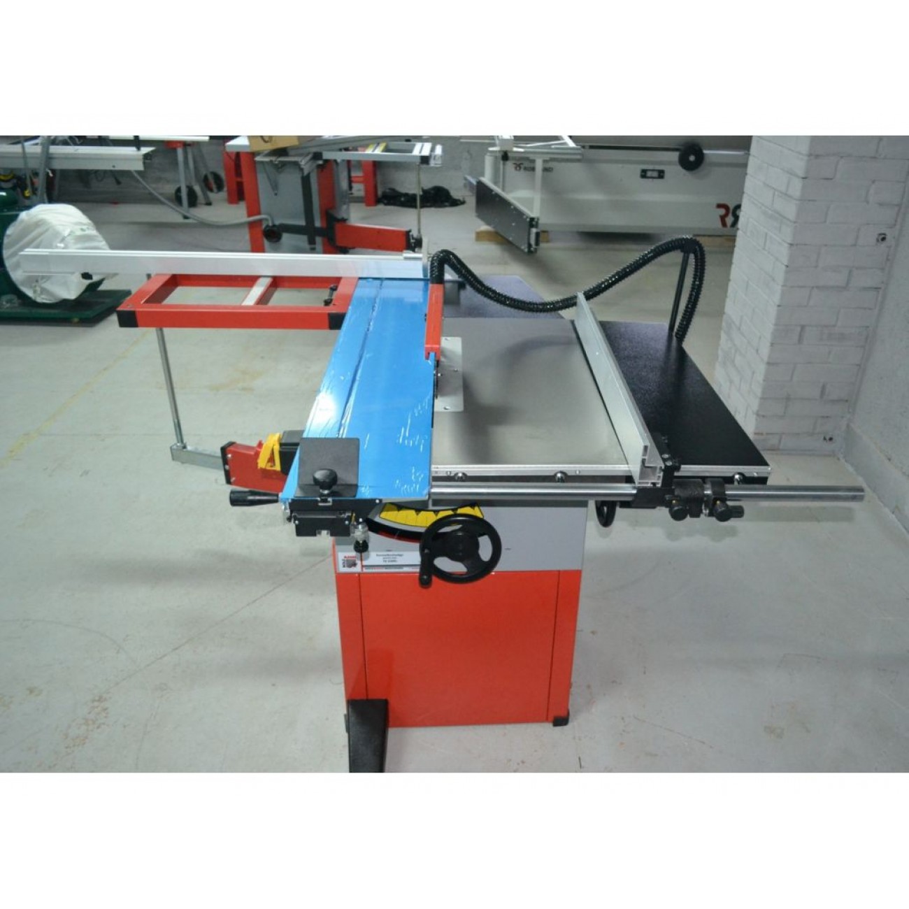 Комплект поставки: Твердосплавний пиляльний диск (HM) 254 мм, захисний кожух пильного диска з патрубком для витяжної системи, обрізний черевик, подовжувач столу, розширювач столу, консоль, висувний телескопічний упор, відкидний упор, паралельний упор, штовхач