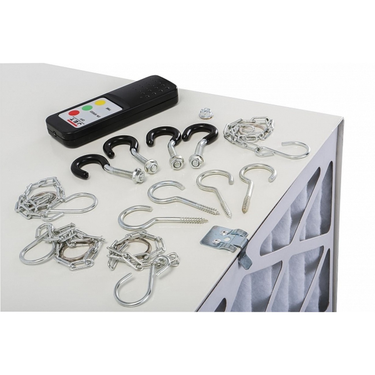 Система фільтрації Jet AFS-400 призначена для очищення повітря в майстернях, гаражах та інших приміщеннях, де відбувається забруднення пилом або суспензією з частинок лакофарбових матеріалів. Передбачено два основні режими: безперервний та програмований. Останній використовують для очищення в неробочий час: за допомогою пульта ДУ виставляють таймер і потужність (продуктивність) - виконавши програму, установка відключиться.