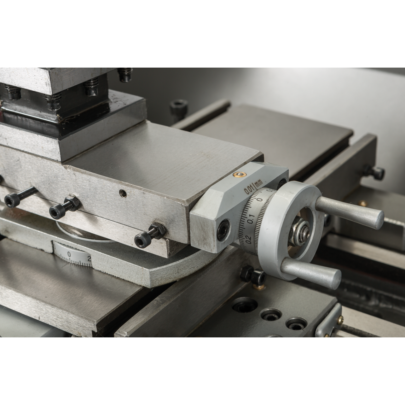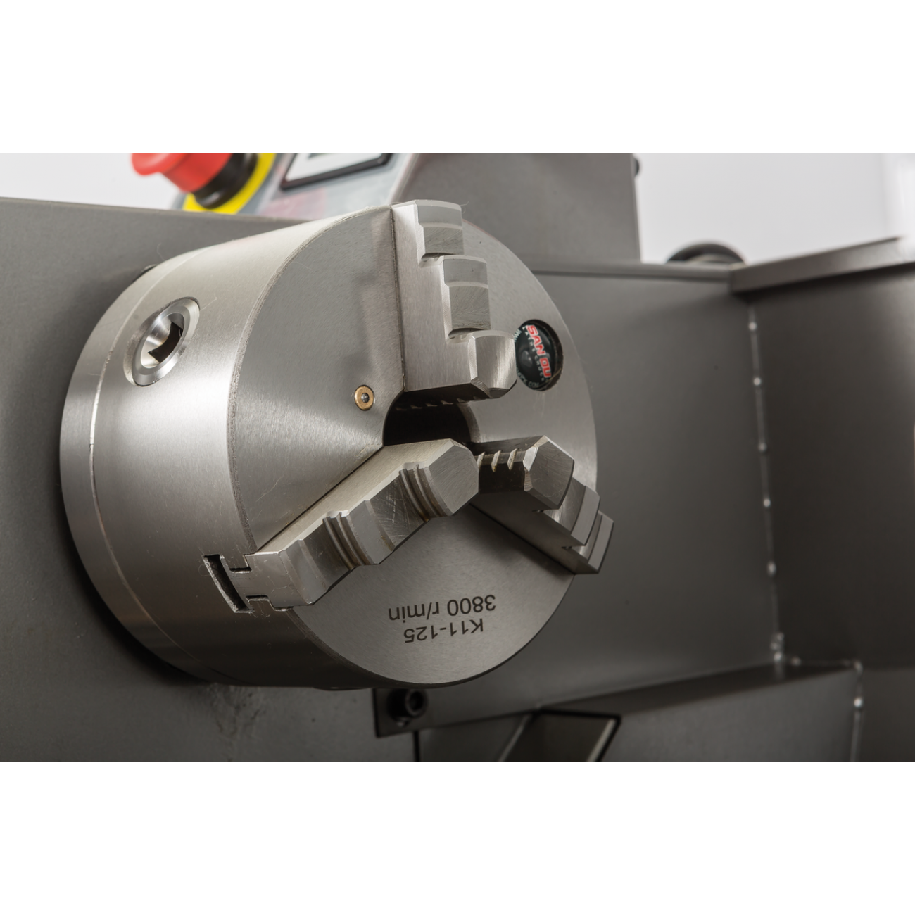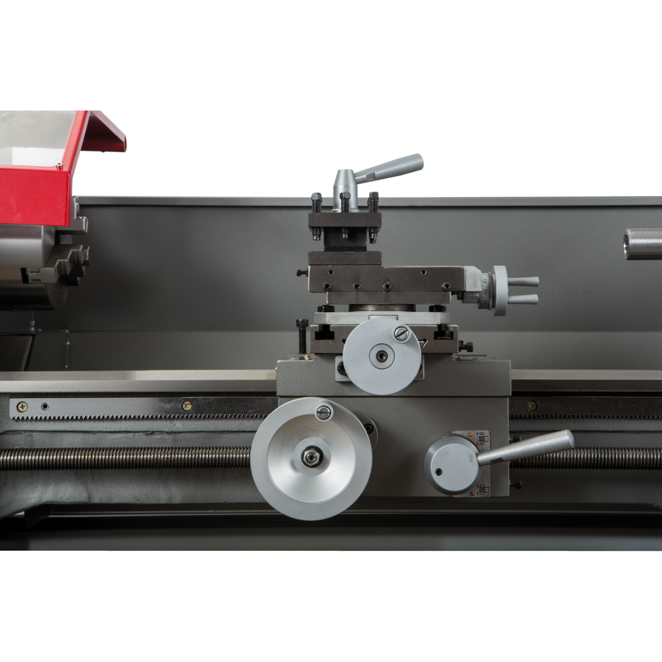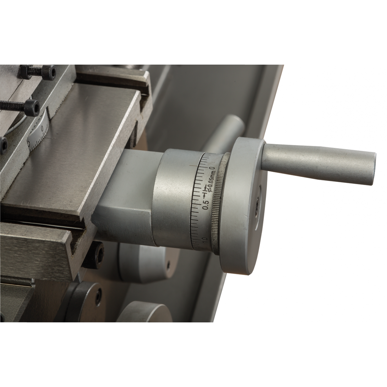 Максимальний діаметр обробки на верстаті становить 250 мм, максимальна відстань між центрами становить 500 мм, а діаметр обробки над супортом 140 мм і для того, при цьому верстат підключається до побутової мережі 220 В, а це означає, що верстат можна використовувати вдома, в гаражі, майстерні і Вам не знадобиться 3-х фазна мережа. Потужний двигун 1,1 кВт забезпечить прекрасну обробку на верстаті і обертатиме шпиндель з конусів Морзе МК-4 у двох діапазонах, з плавним регулюванням, від 50 до 1250 оборотів за хвилину та від 100 до 2500 оборотів за хвилину.
